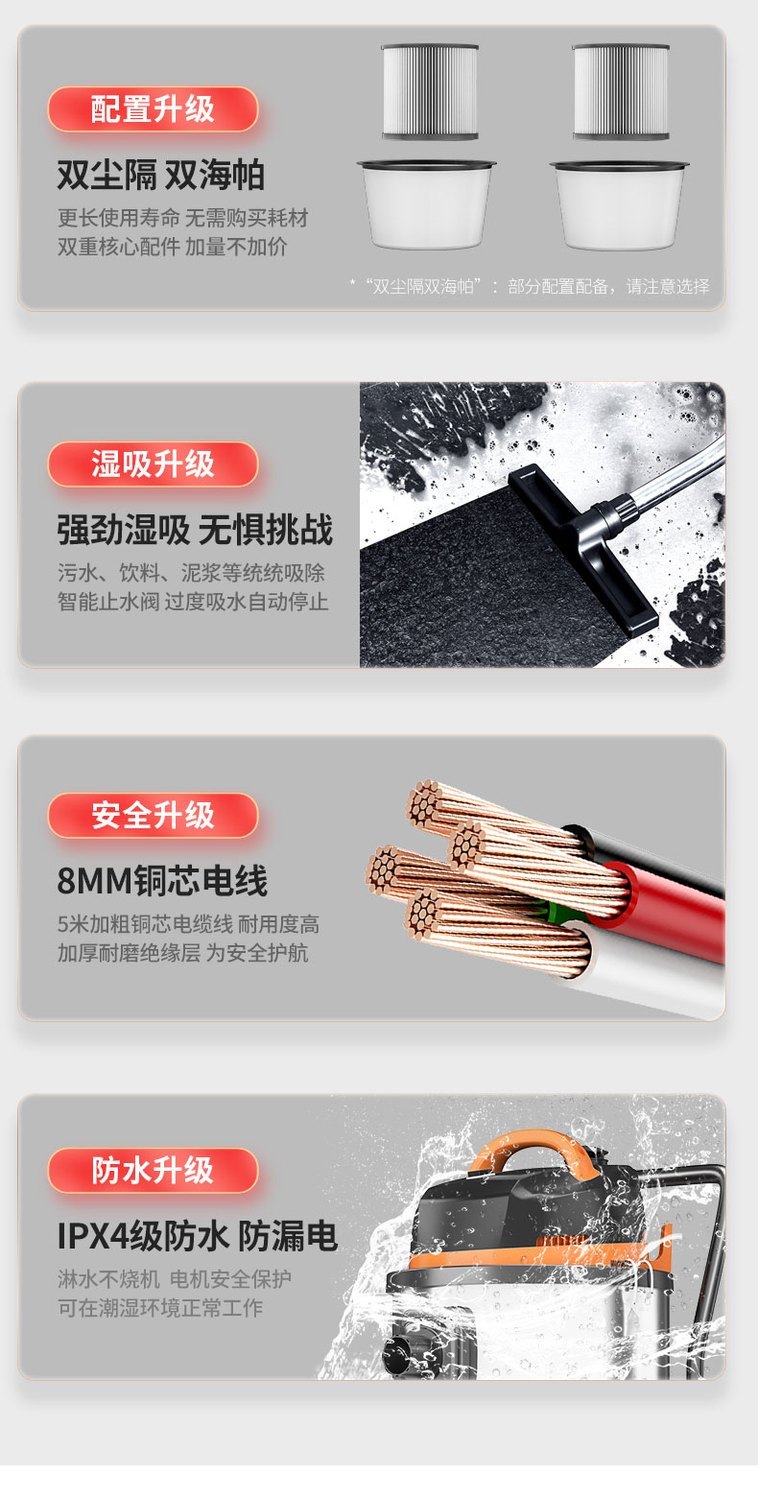 【詢價有驚喜】榮事達工業吸塵器家庭酒店大功率大吸力干濕吹商用車用美縫吸塵 5
