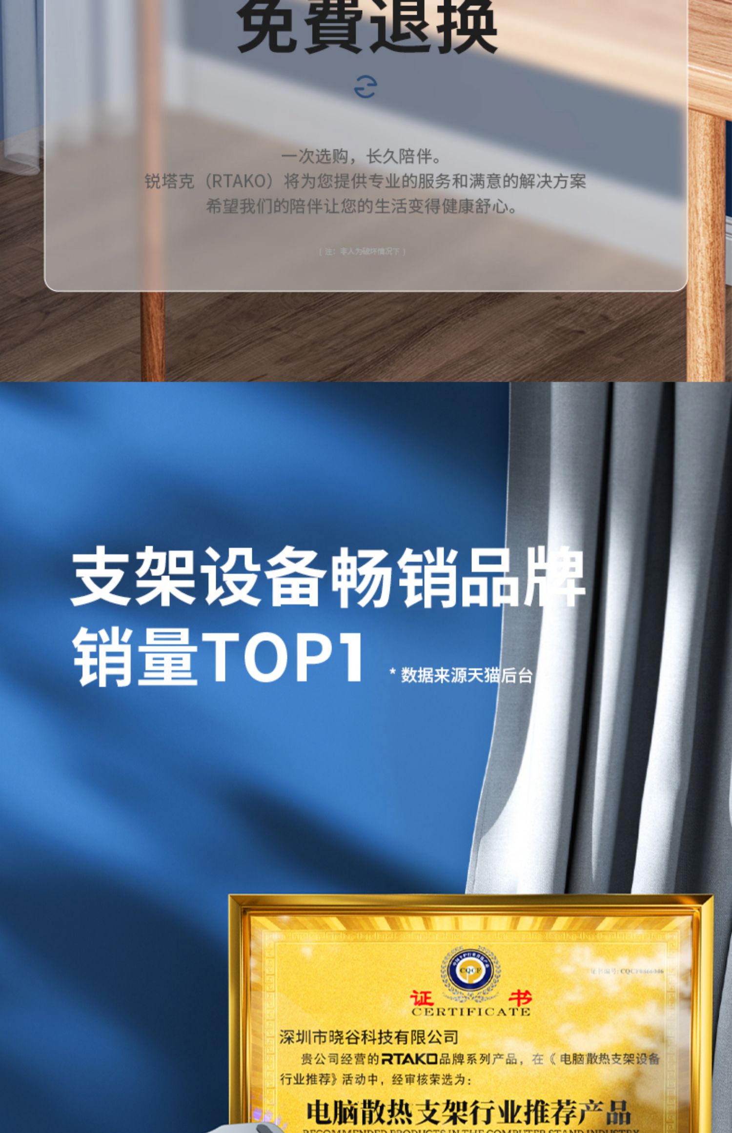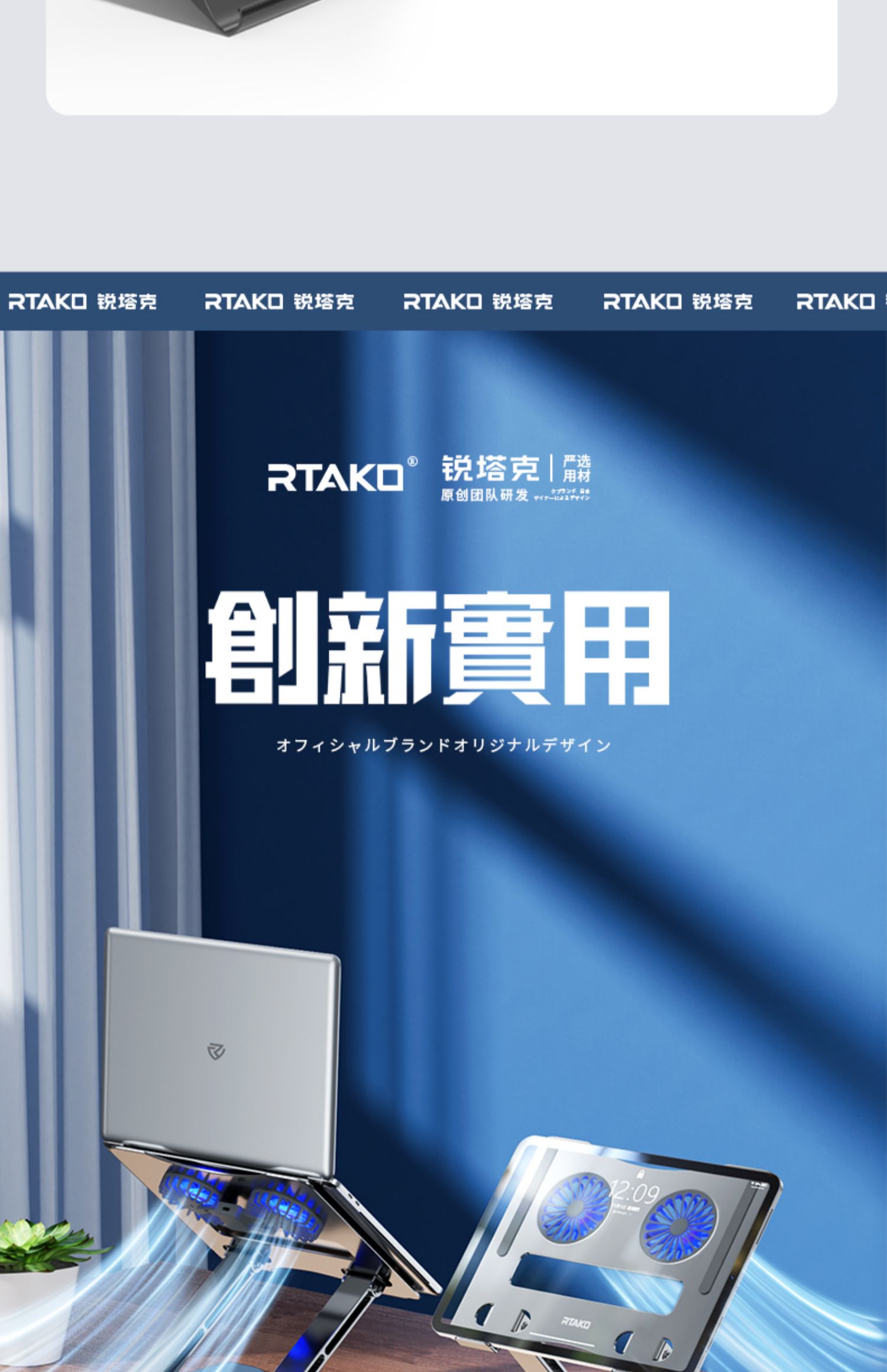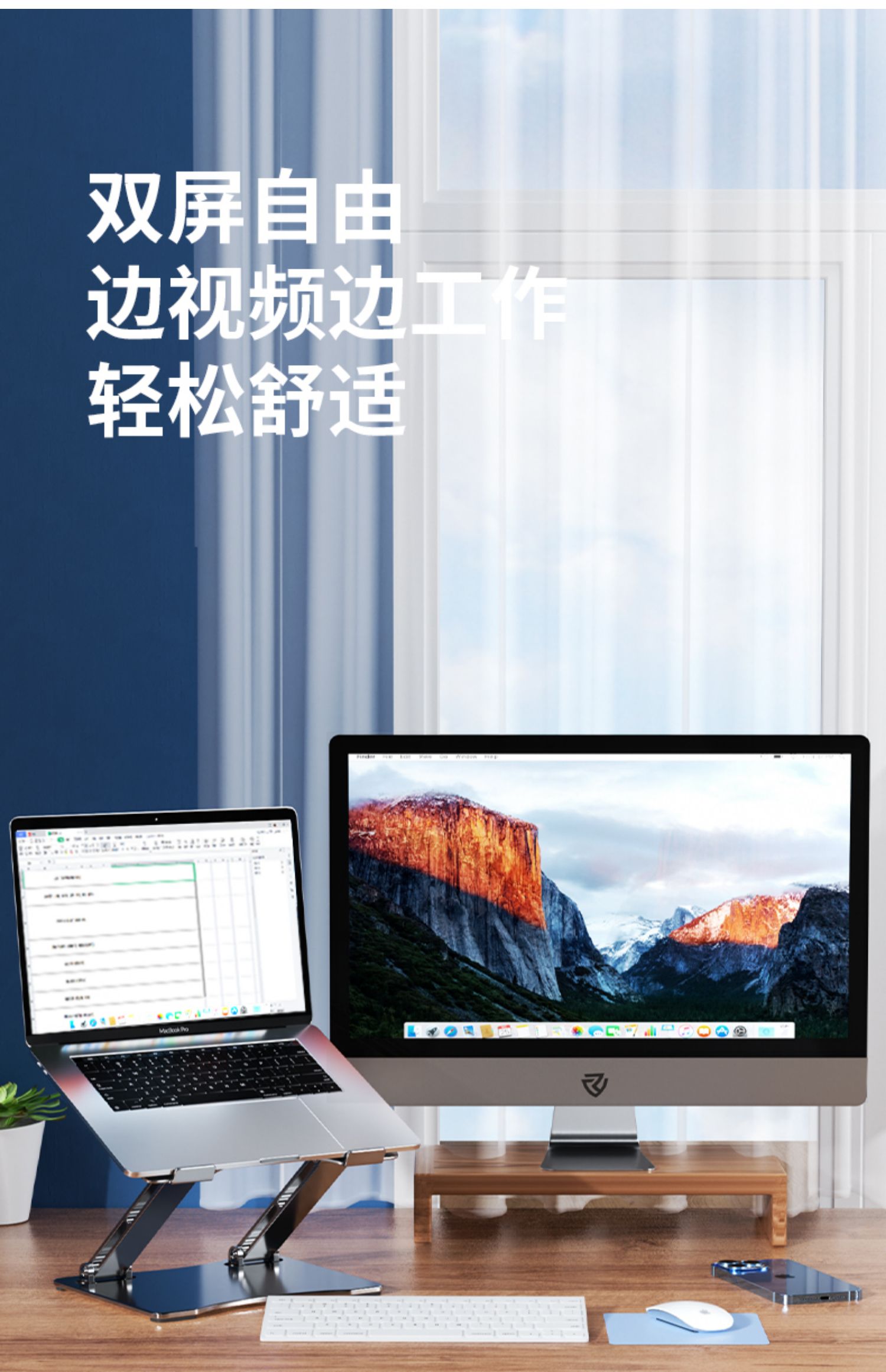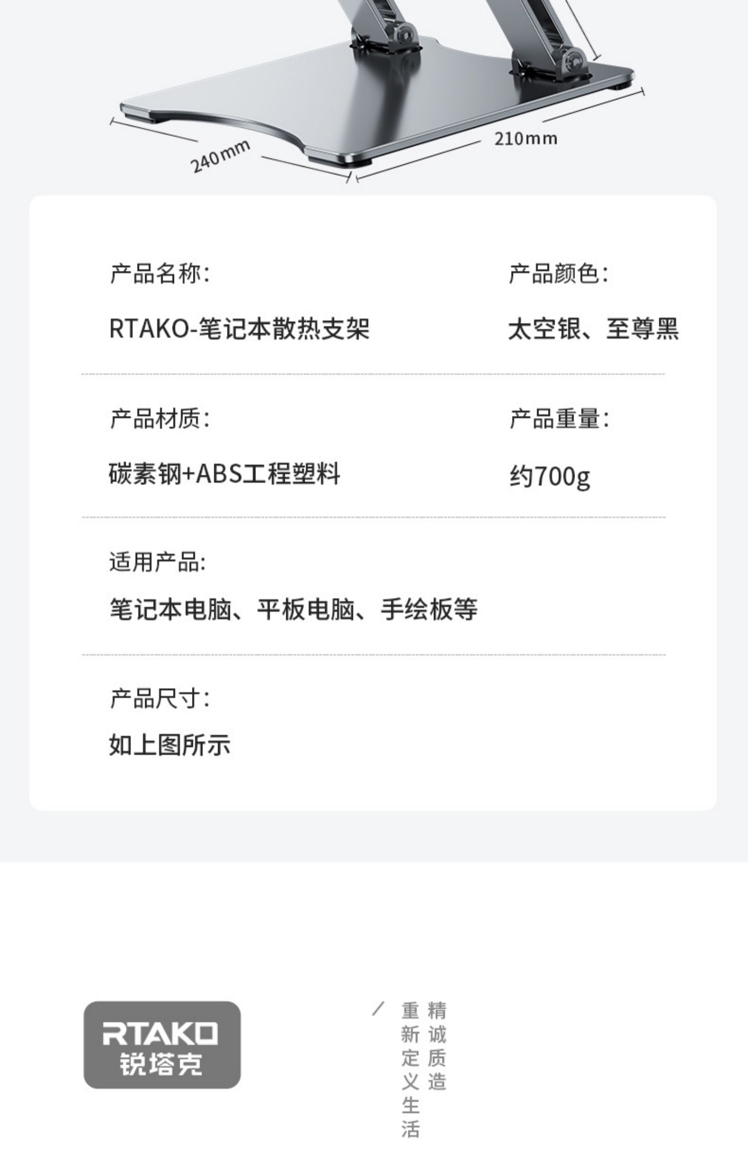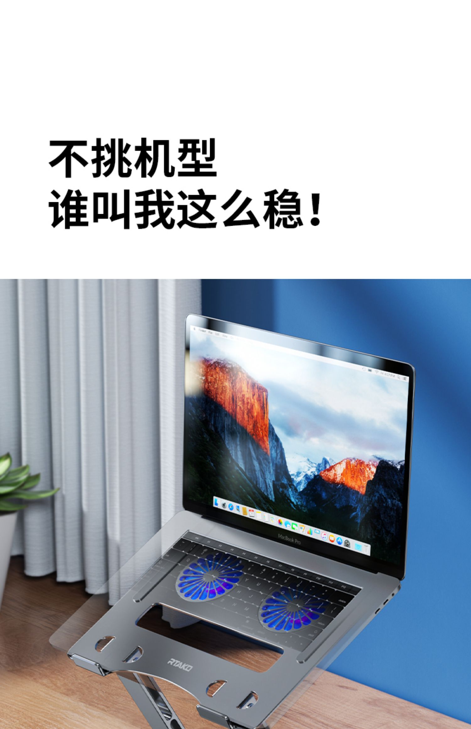 5. 【雙核散熱架】銳塔克筆記本電腦散熱器便攜可升降增高托架手提桌面懸空站立式支架適用蘋果華為支撐底座架子 筆電支架