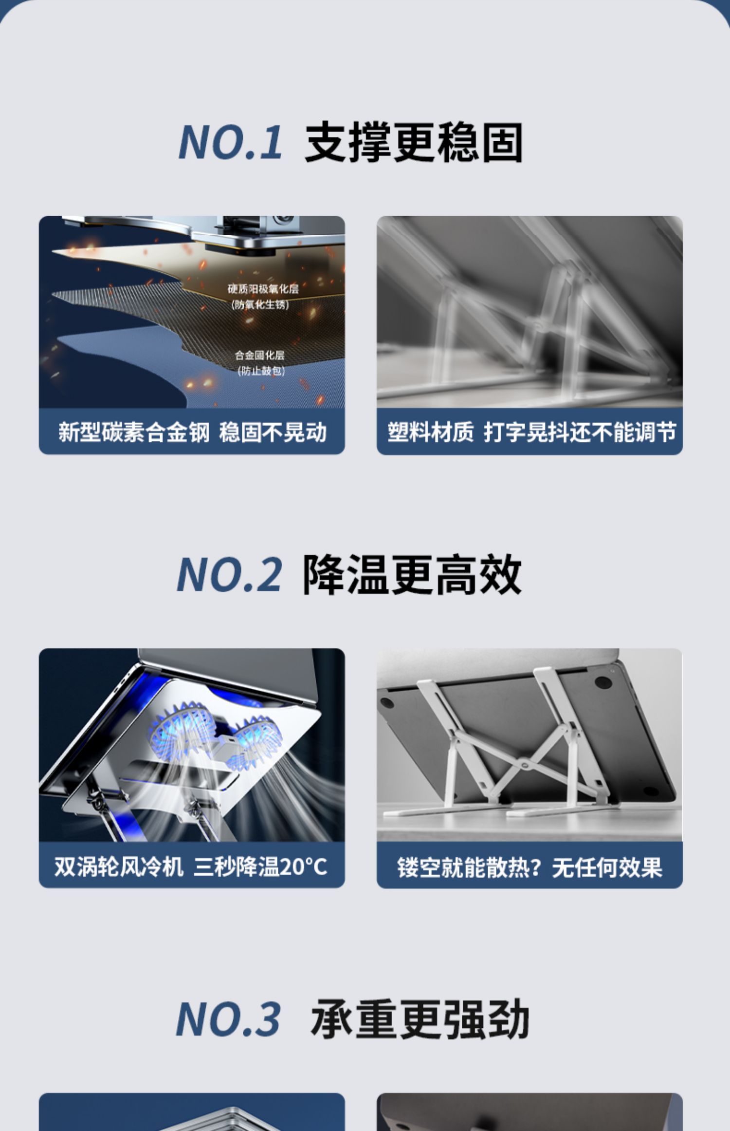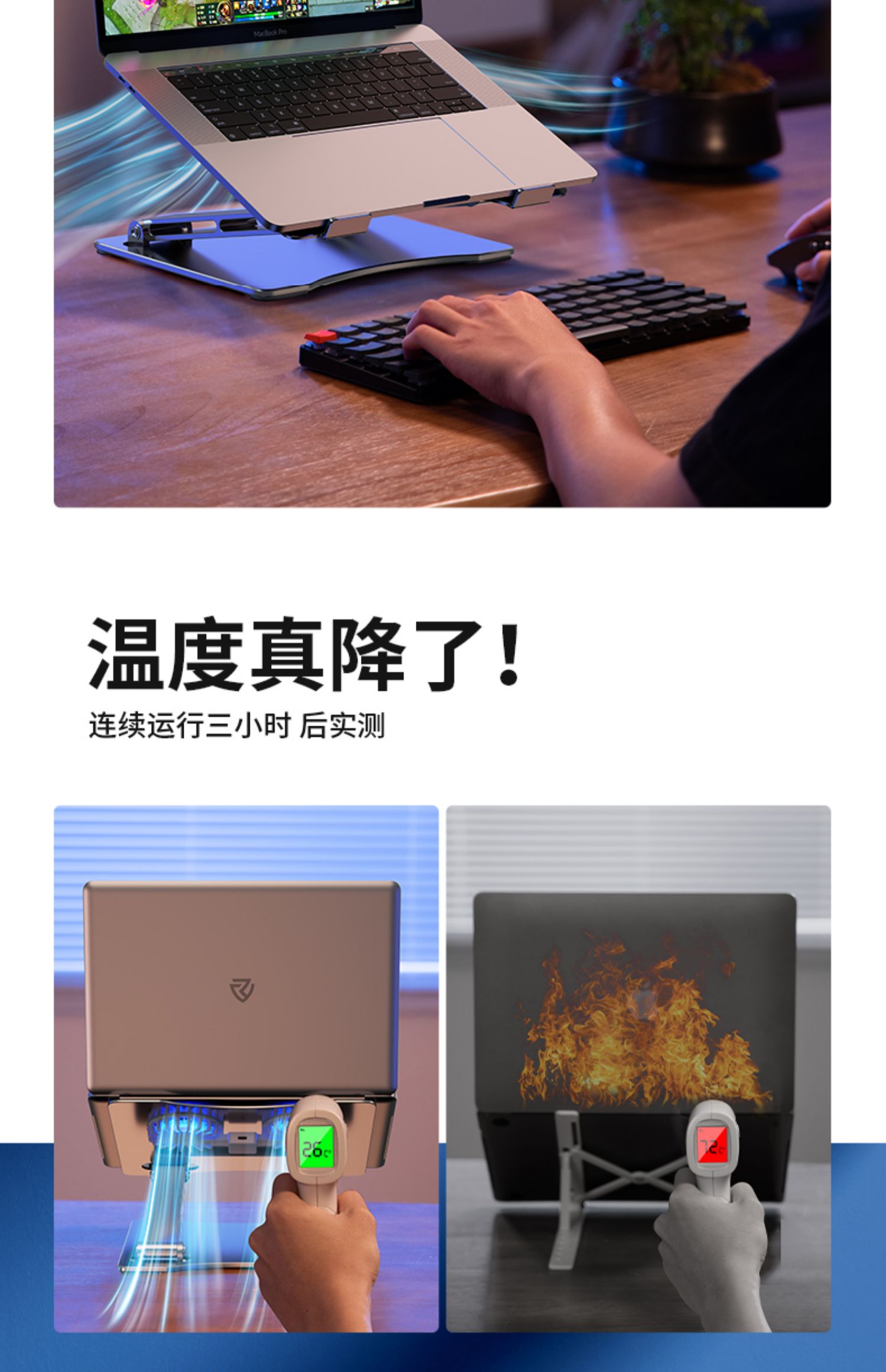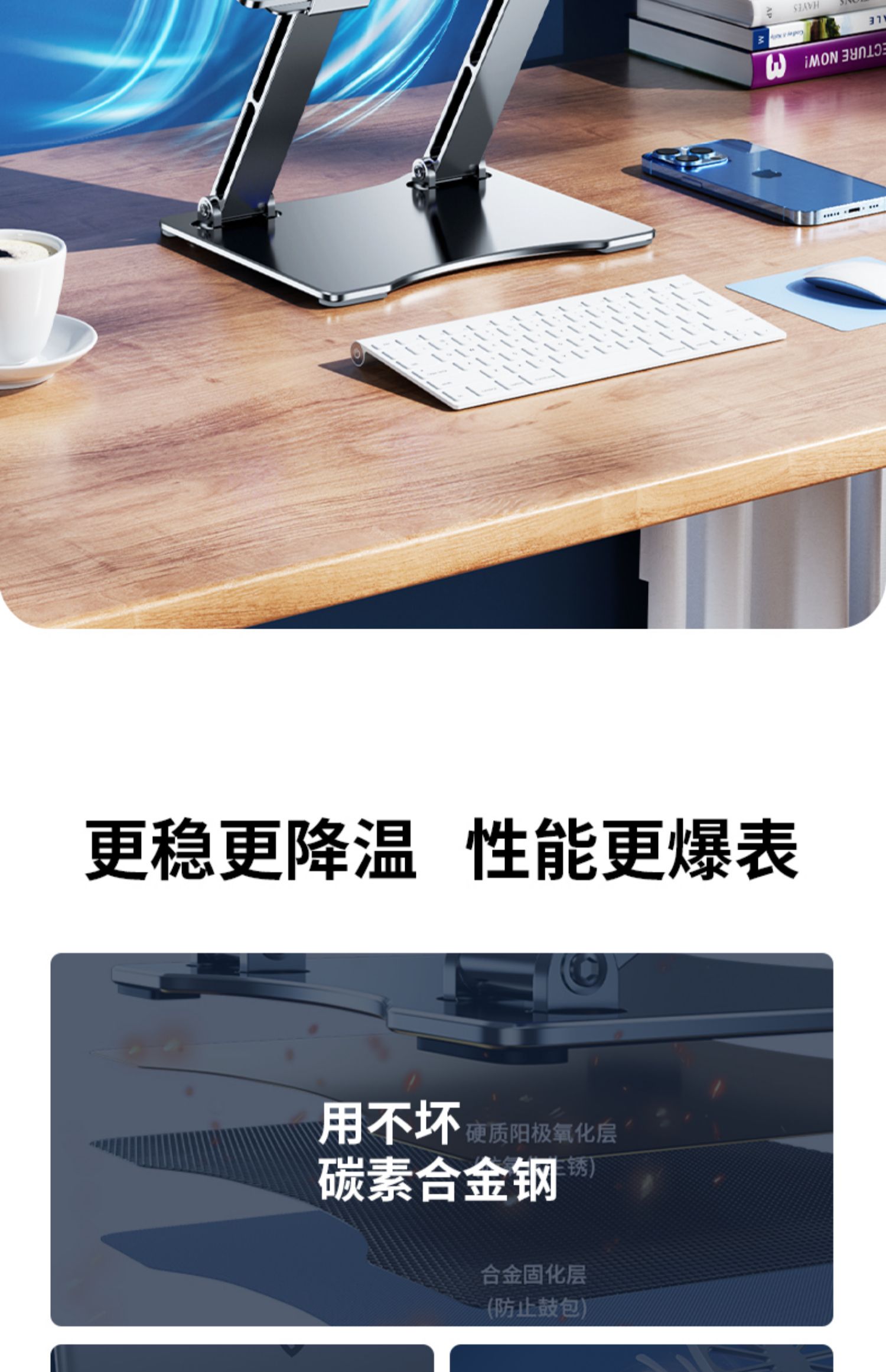 【雙核散熱架】銳塔克筆記本電腦散熱器便攜可升降增高托架手提桌面懸空站立式支架適用蘋果華為支撐底座架子 筆電支架 3
