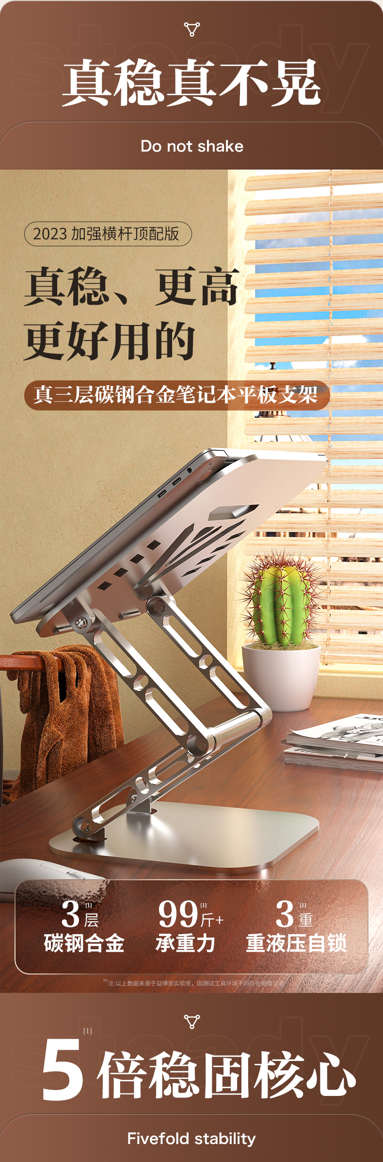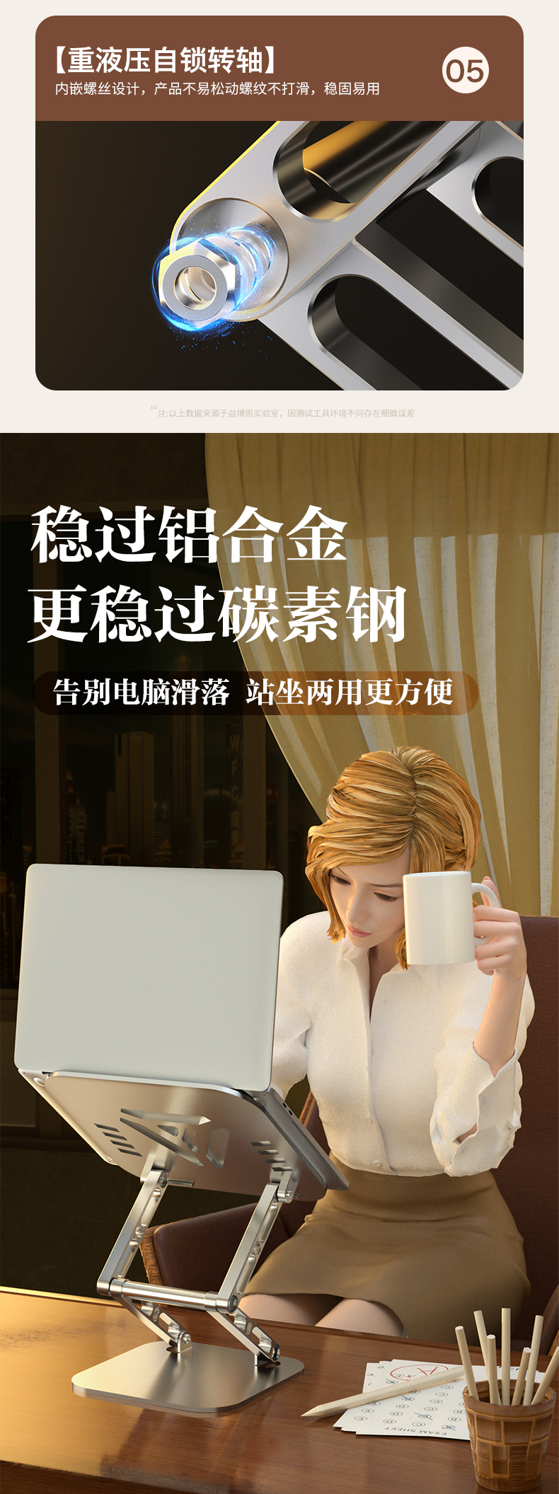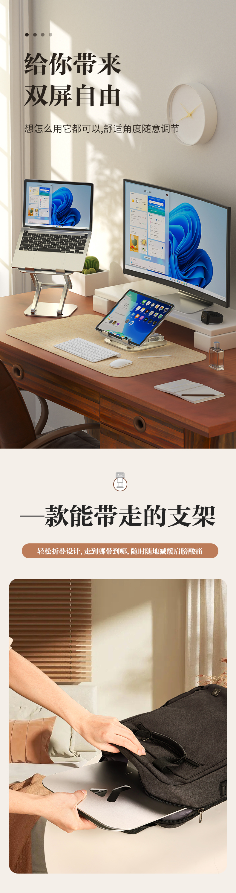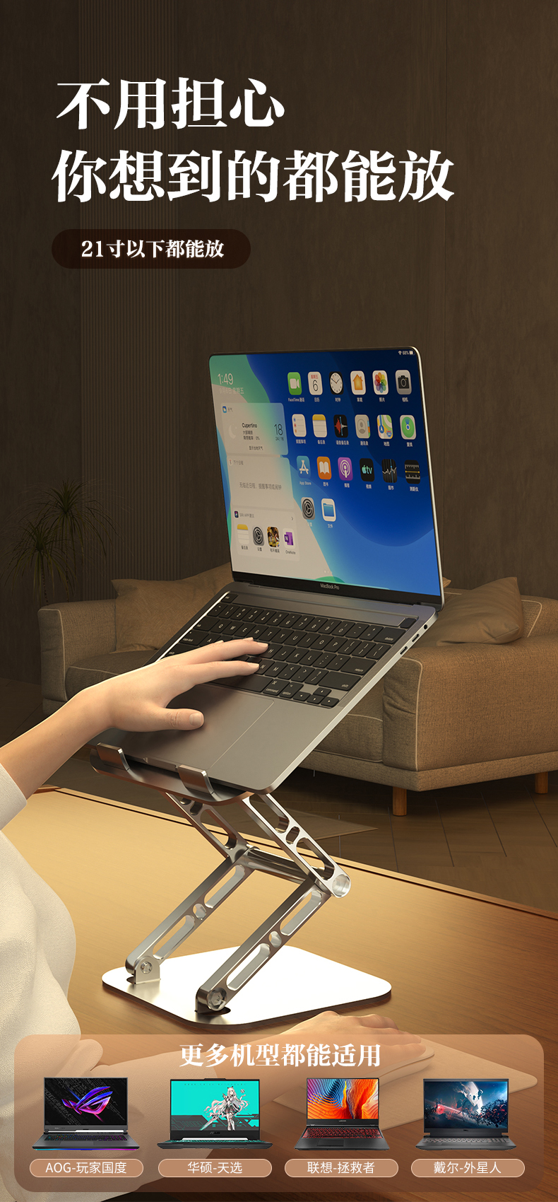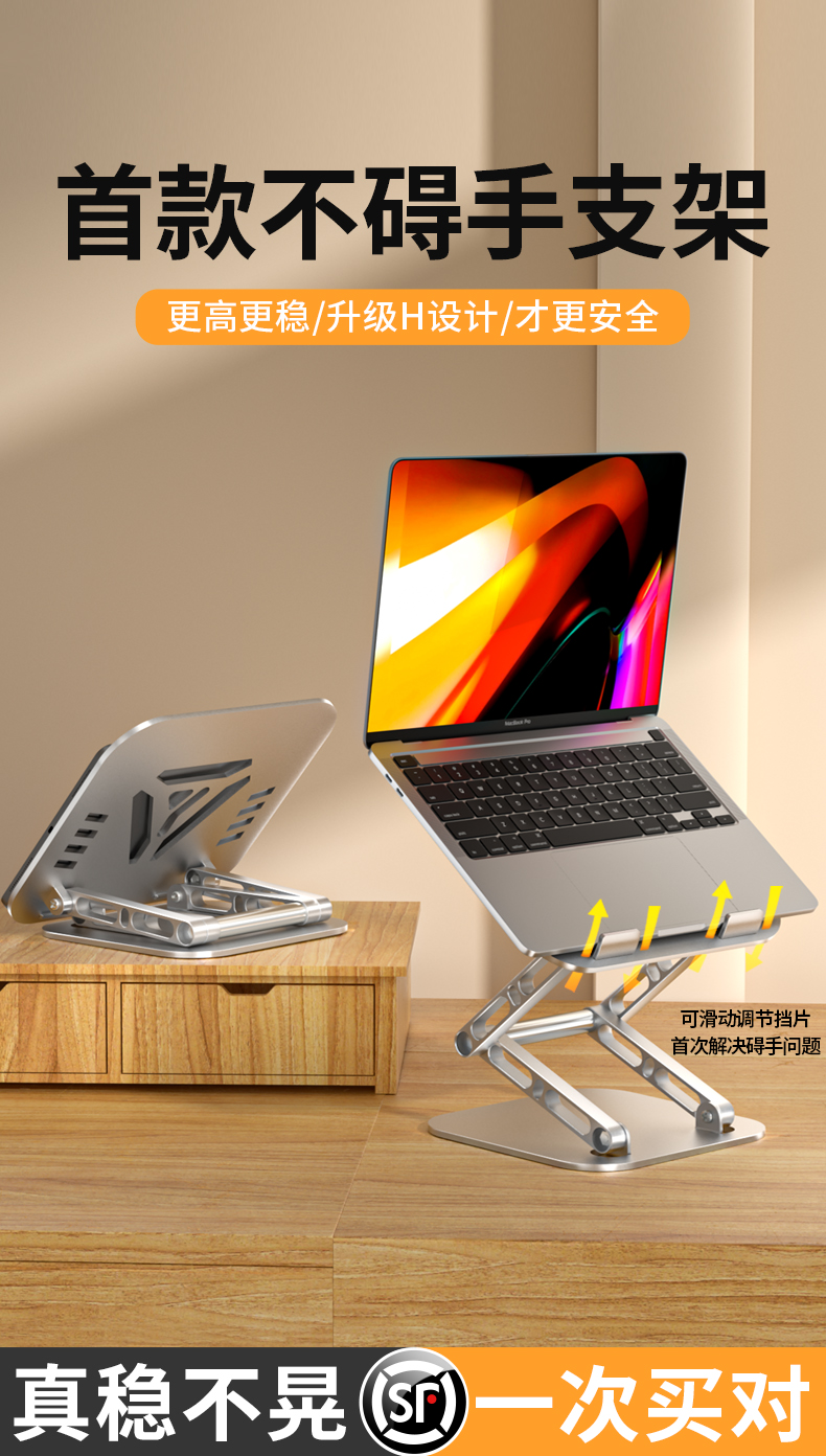 5. 筆記本電腦支架托適用懸空散熱站立可升降金屬手提增高架子立式桌面支撐臺便攜蘋果macbook二合一 筆電支架