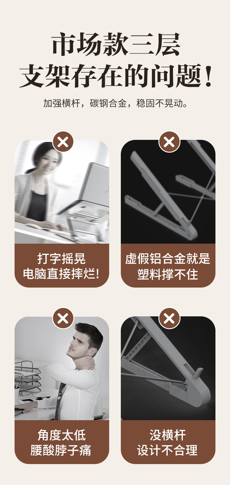 筆記本電腦支架托適用懸空散熱站立可升降金屬手提增高架子立式桌面支撐臺便攜蘋果macbook二合一 筆電支架 3