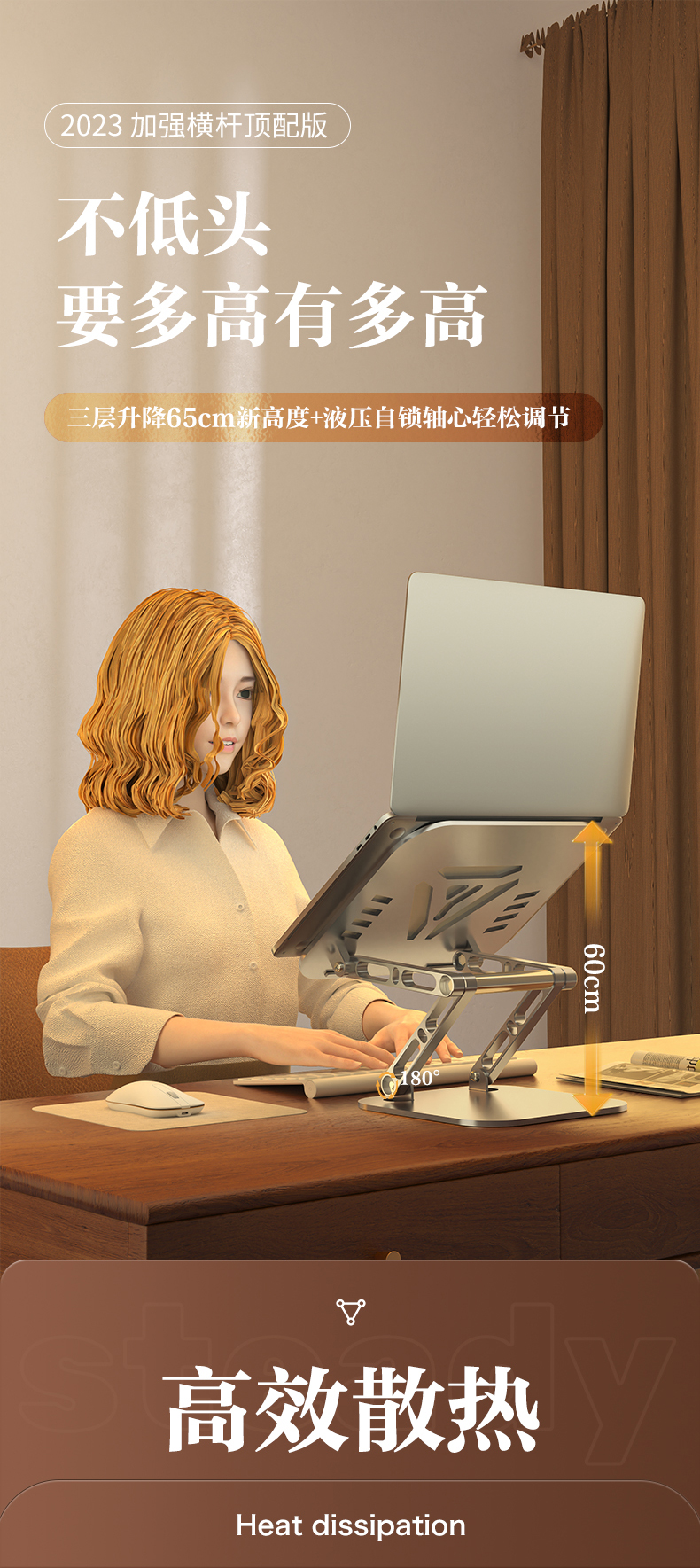 筆記本電腦支架托適用懸空散熱站立可升降金屬手提增高架子立式桌面支撐臺便攜蘋果macbook二合一 筆電支架 7