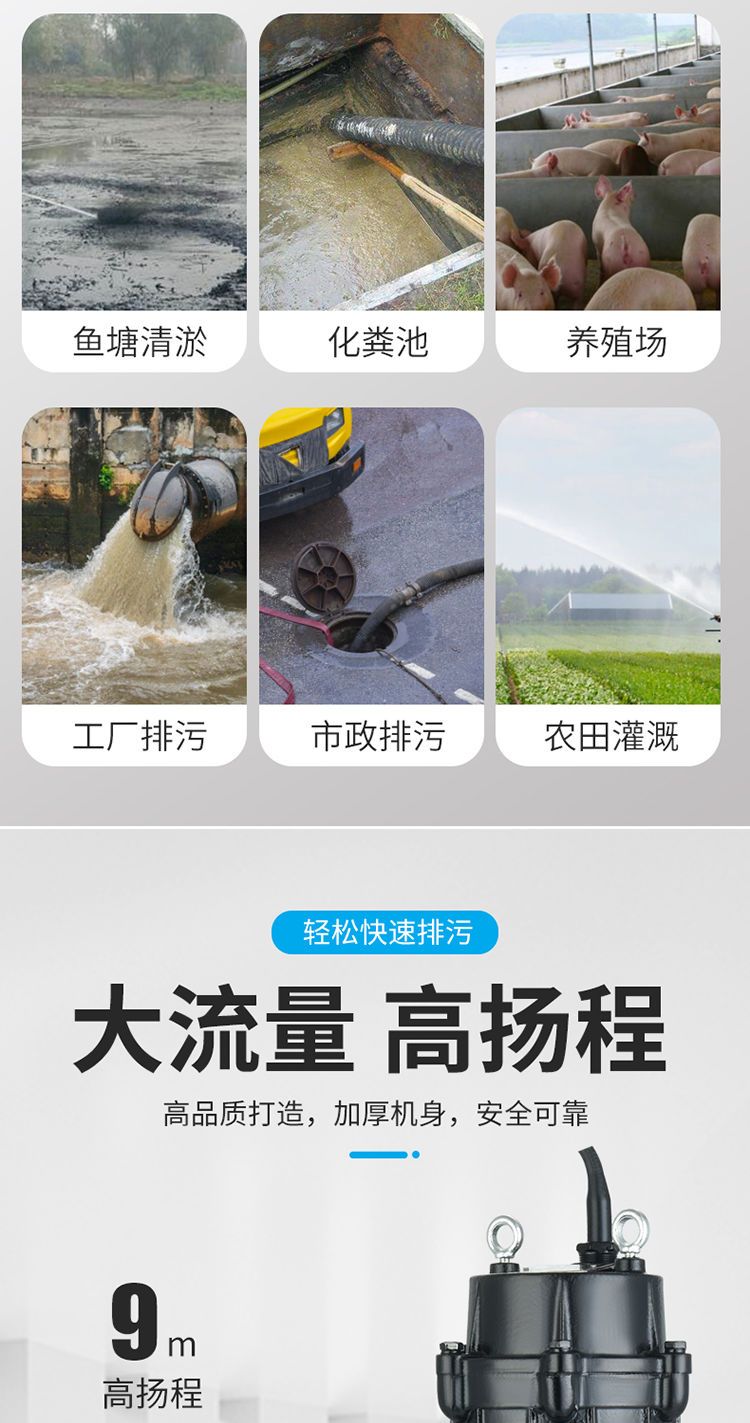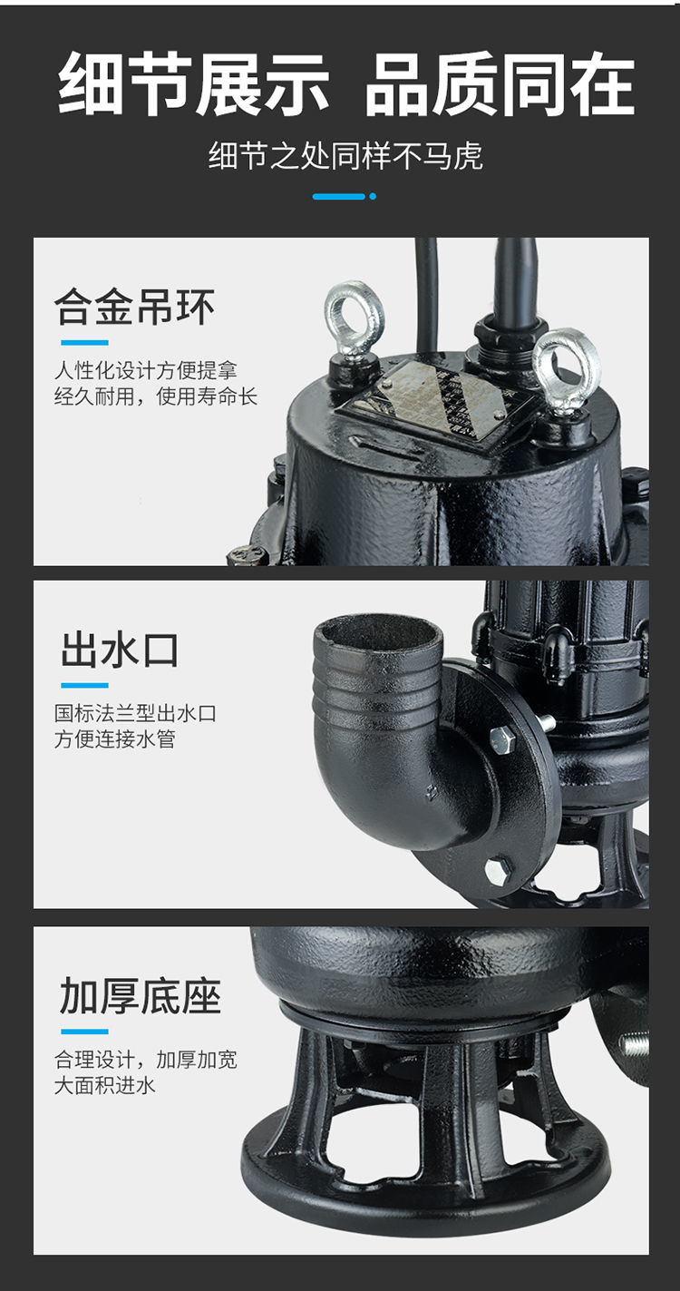 【詢價有驚喜】上海WQ污水泵無堵塞排污220家用化糞池大功率三相380地下室提升泵 7