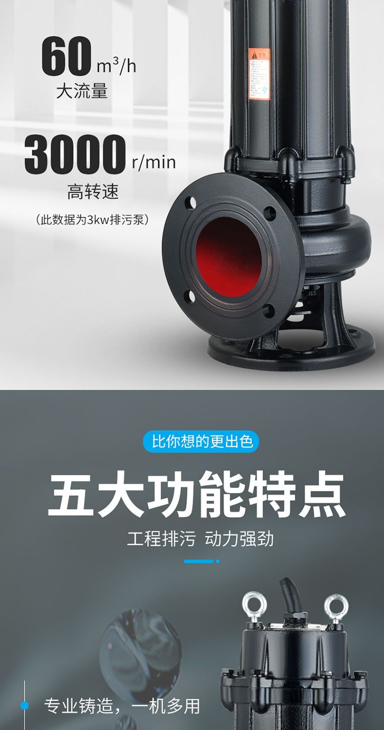【詢價有驚喜】上海WQ污水泵無堵塞排污220家用化糞池大功率三相380地下室提升泵 5