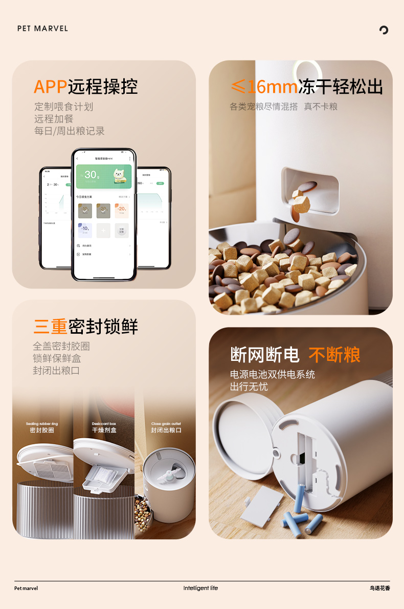 5. 【超多款式咨詢客服】鳥語花香mini智能自動喂食器貓咪狗狗貓糧狗糧定時定量寵物投食機