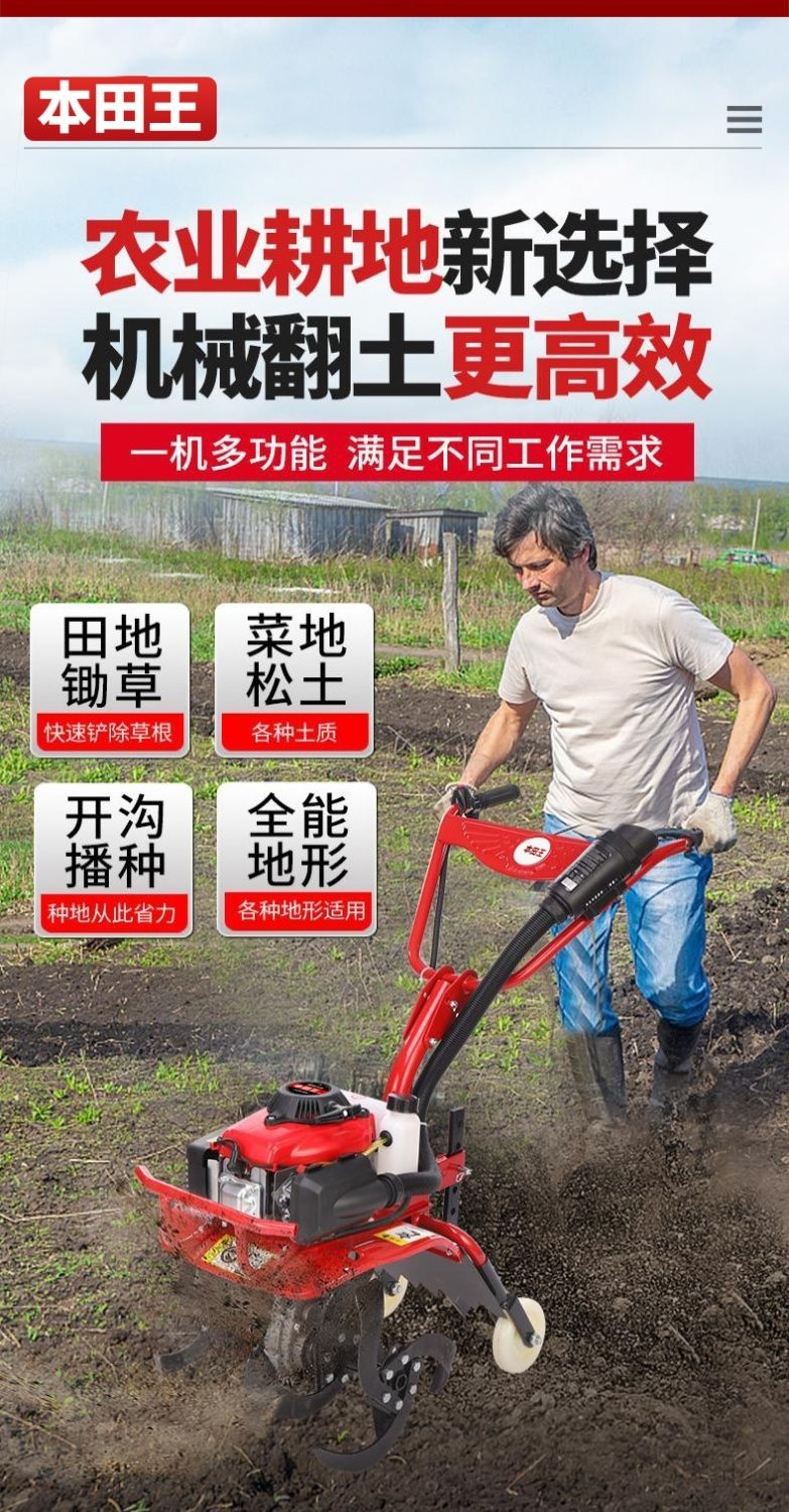 5. 【最低價】【公司貨】本田王微耕機小型汽油家用四沖程松土水田鋤草開溝機翻地開荒旋耕