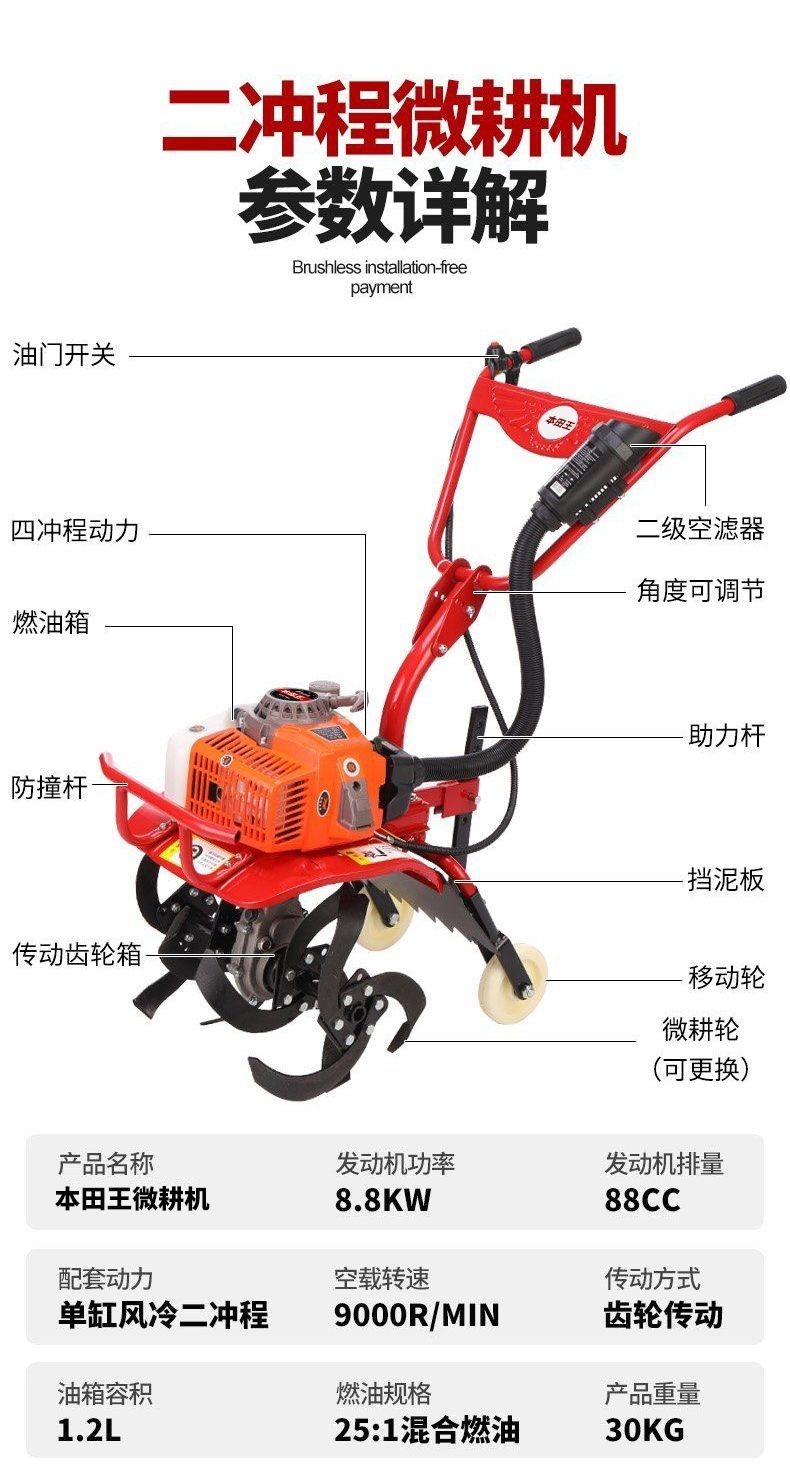 【最低價】【公司貨】本田王微耕機小型汽油家用四沖程松土水田鋤草開溝機翻地開荒旋耕 2