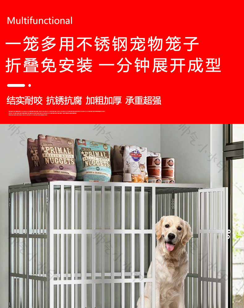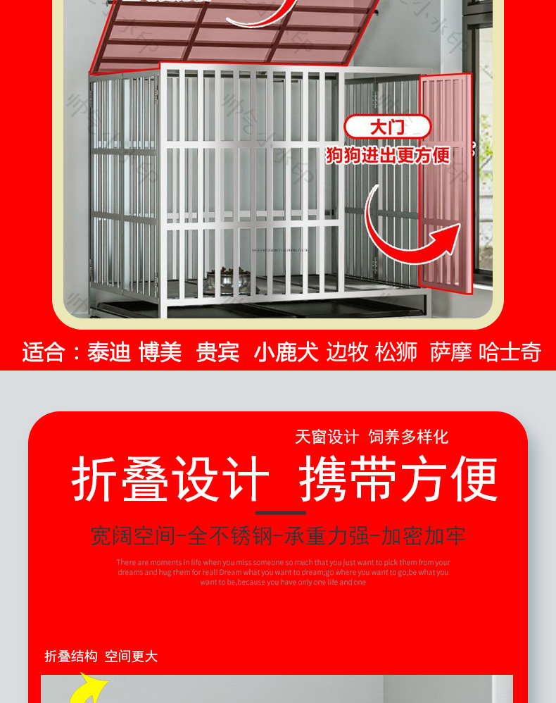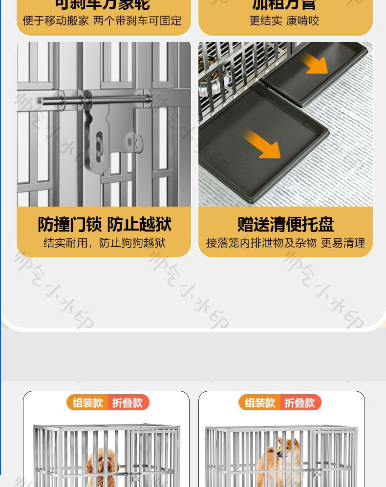 5. 【超多款式咨詢客服】不銹鋼狗籠子小中大型犬籠泰迪德牧金毛拉布拉多室內折疊寵物狗籠