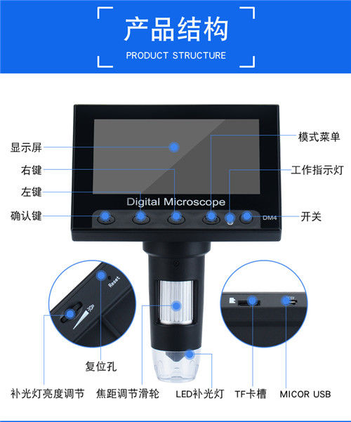 【最低價】【公司貨】高清帶屏便攜1000倍手機線路板維修電子顯微鏡工業放大鏡建盞古玩 6