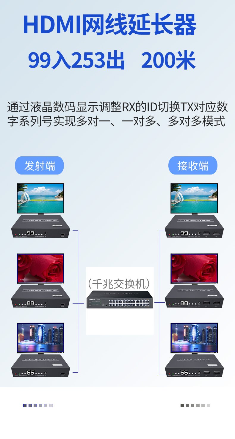 5. 全網最低價~HDMI矩陣網線視頻延長器USB鼠鍵多對多高清傳輸200米過POE交換機
