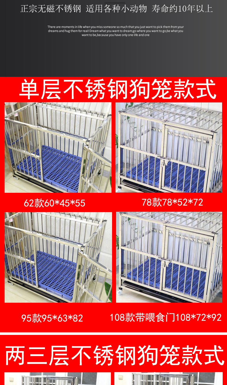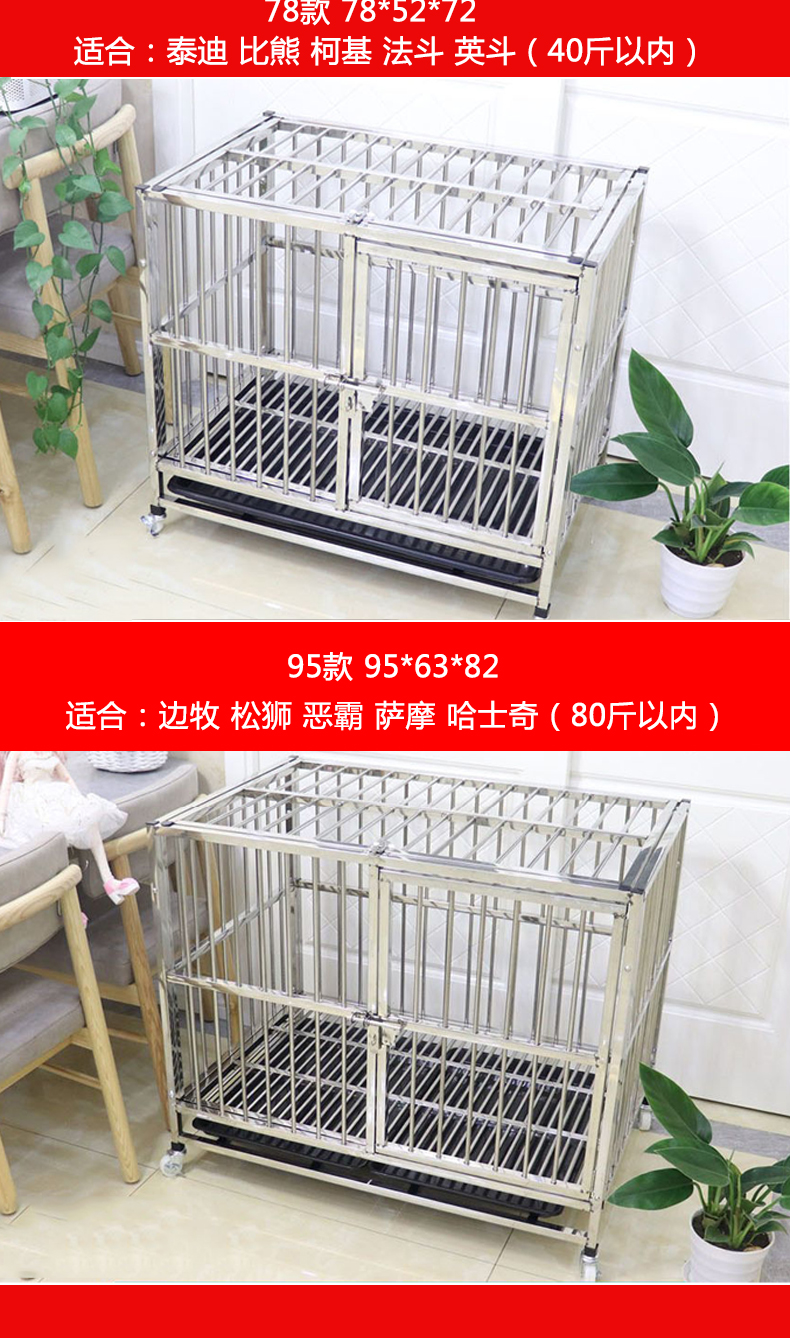 5. 【超多款式咨詢客服】不銹鋼可拆卸狗籠中型犬狗籠子帶廁所方管室內小型帶廁所寵物金屬