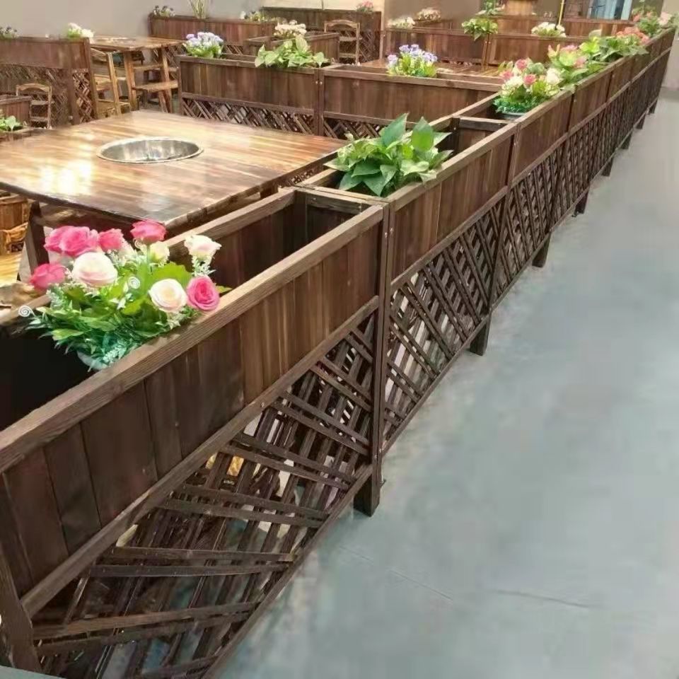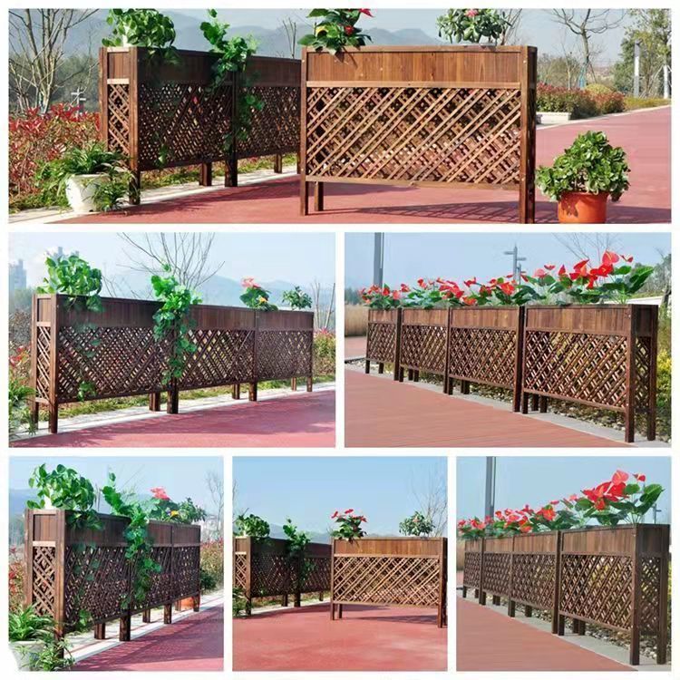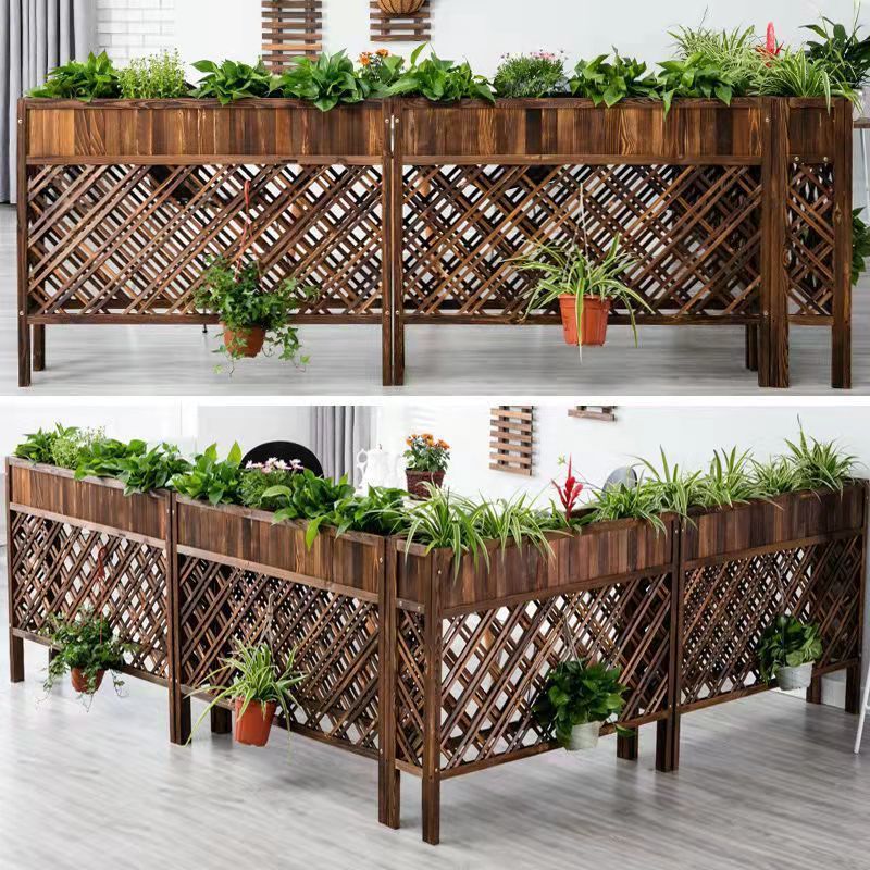 【最低價】【公司貨】防腐木碳化隔斷花架室內餐廳裝飾置物架實木網格花槽圍欄柵欄戶外 5