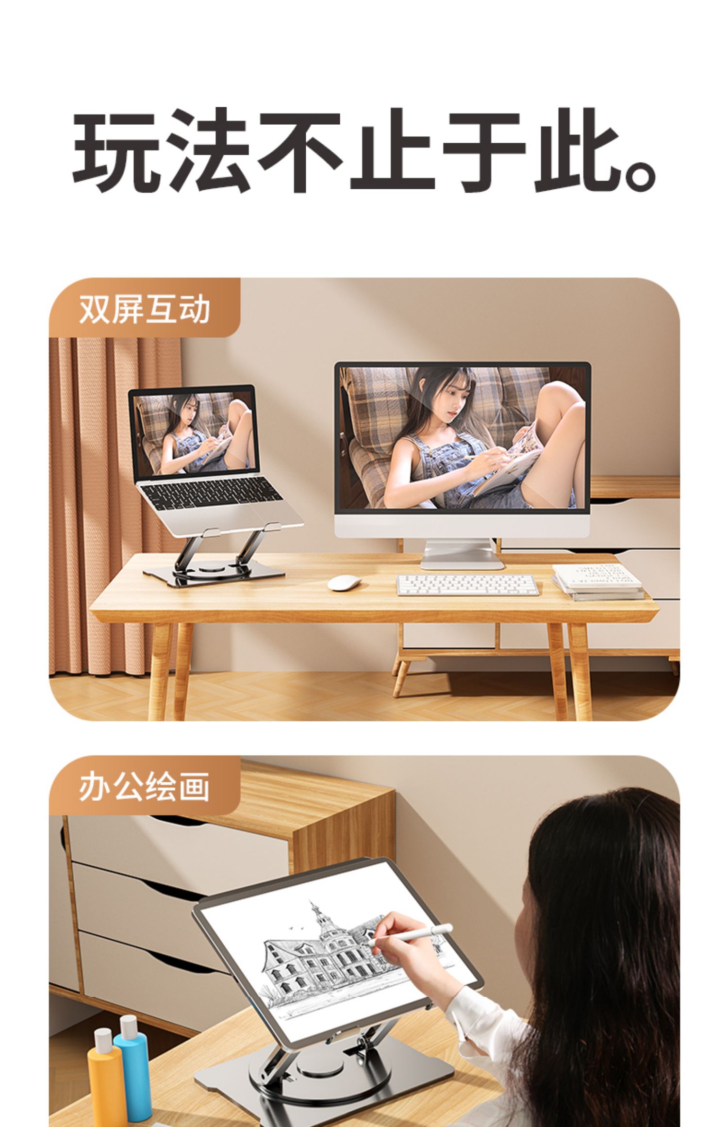 360°可旋轉】筆記本電腦支架桌面增高托架懸空立式鋁合金支撐架升降適用蘋果macbook聯想游戲本散熱底座架子 筆電支架 2