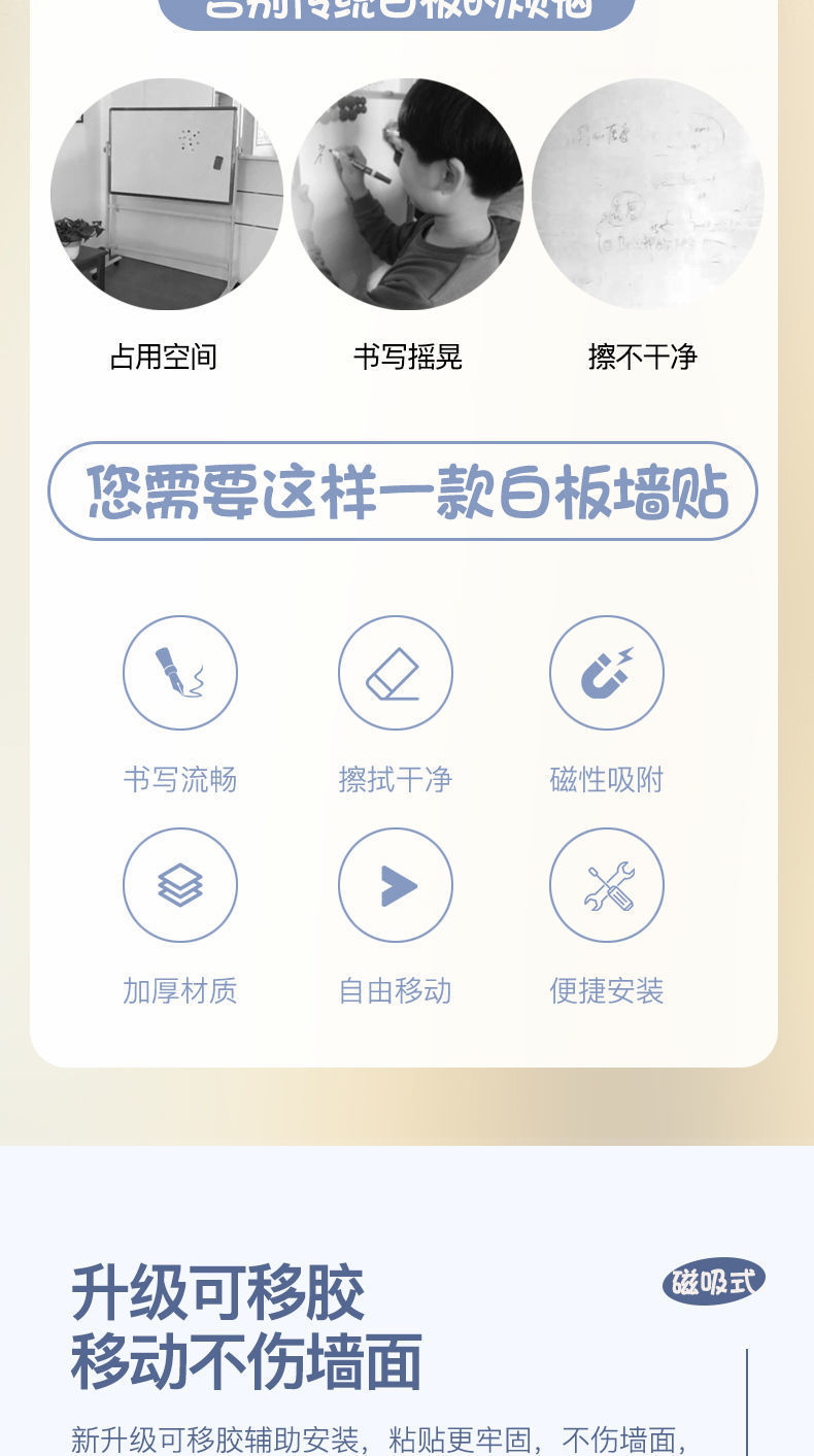 【最低價】【公司貨】磁性不傷墻軟白板墻貼可移除兒童涂鴉家用辦公可擦寫黑板貼掛墻紙 7
