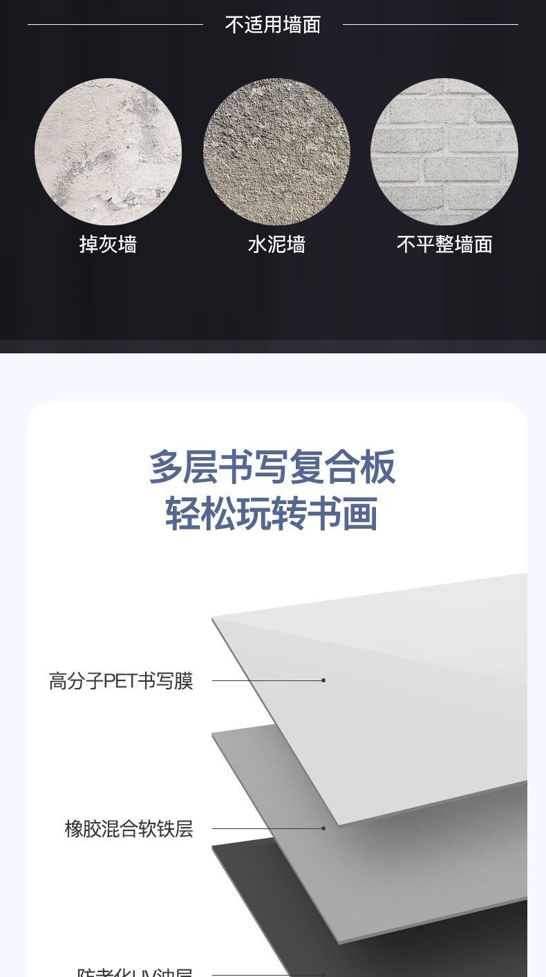 【最低價】【公司貨】磁性不傷墻軟白板墻貼可移除兒童涂鴉家用辦公可擦寫黑板貼掛墻紙 4