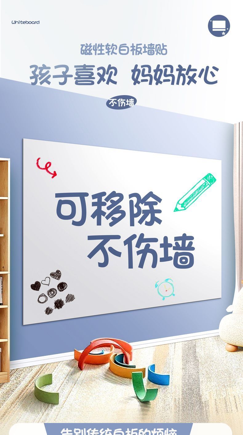 5. 【最低價】【公司貨】磁性不傷墻軟白板墻貼可移除兒童涂鴉家用辦公可擦寫黑板貼掛墻紙
