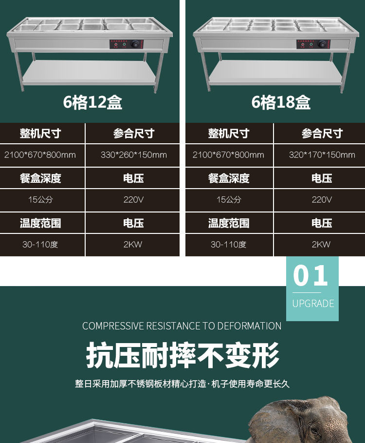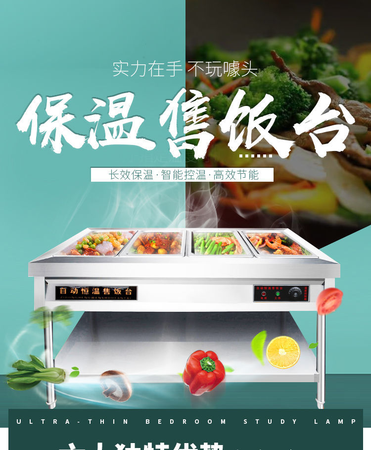 5. 【最低價】【公司貨】商用快餐保溫臺不銹鋼電加熱臺式保溫車食堂多格售菜臺保溫售飯臺