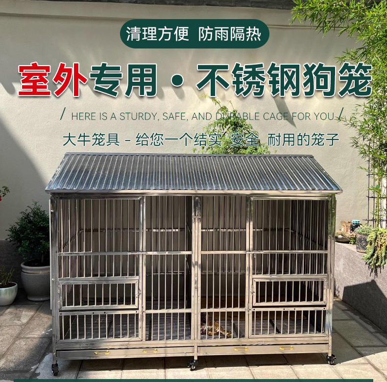 5. 【超多款式咨詢客服】大牛不銹鋼狗籠子大型犬戶外防雨304室外中型犬方管寵物狗狗籠子