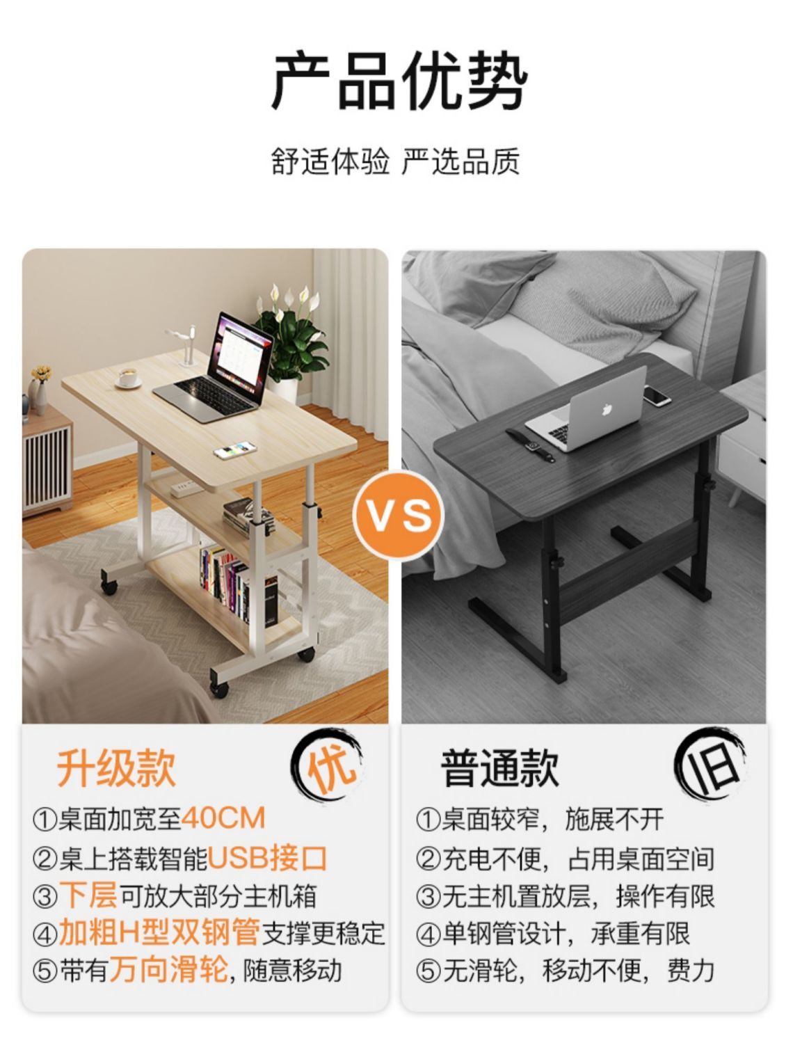 5. 可移動升降桌/宿舍學習桌 【最低價】【公司貨】床邊桌子臥室家用簡易書桌學生宿舍學習桌懶人電腦桌◆生活百貨挖寶節