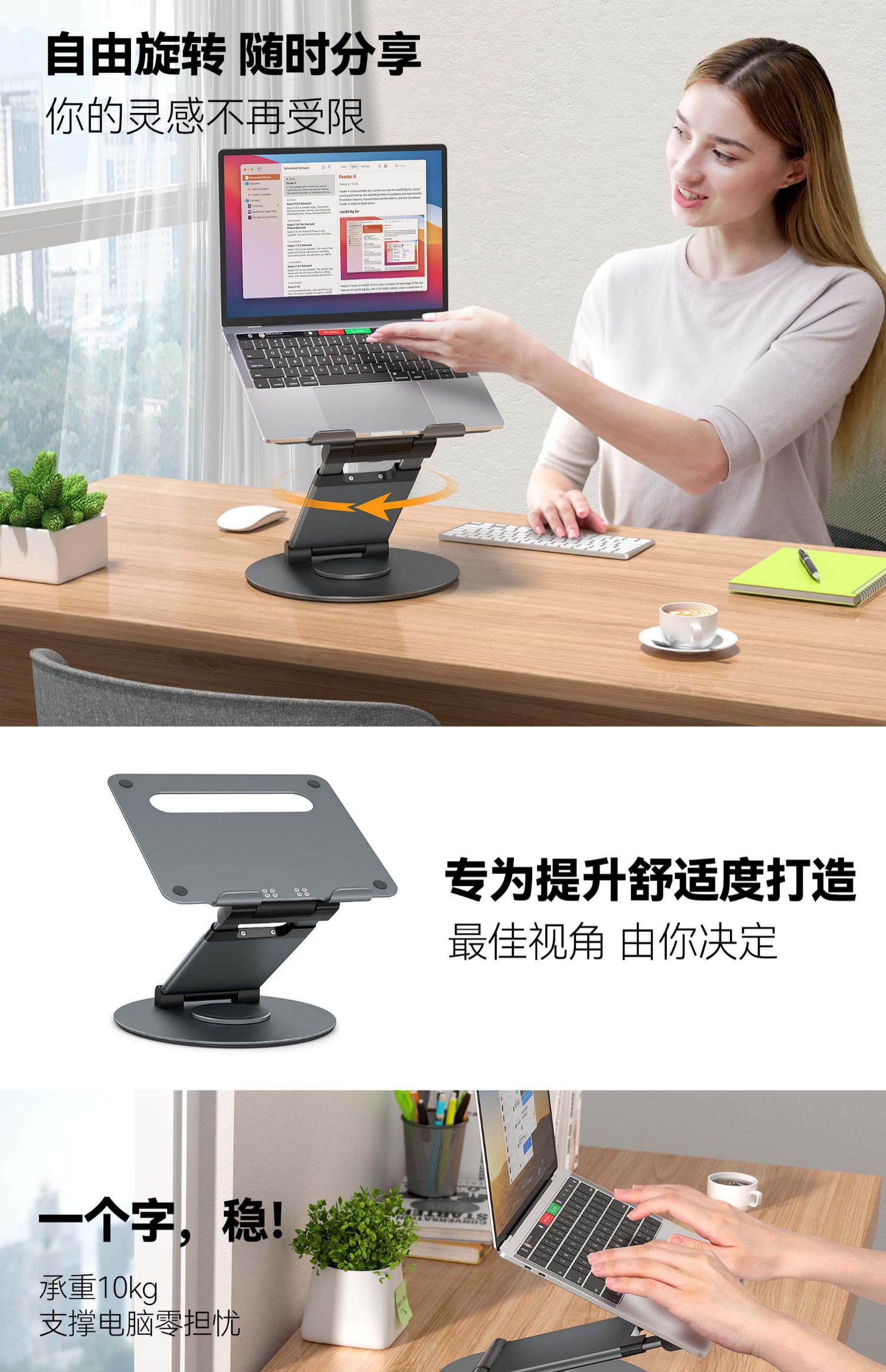 可旋轉筆記本支架托架站立式增高型電腦支架懸空散熱可升降折疊支撐架鋁合金屬辦公桌面適用華為macbook蘋果 筆電支架 7