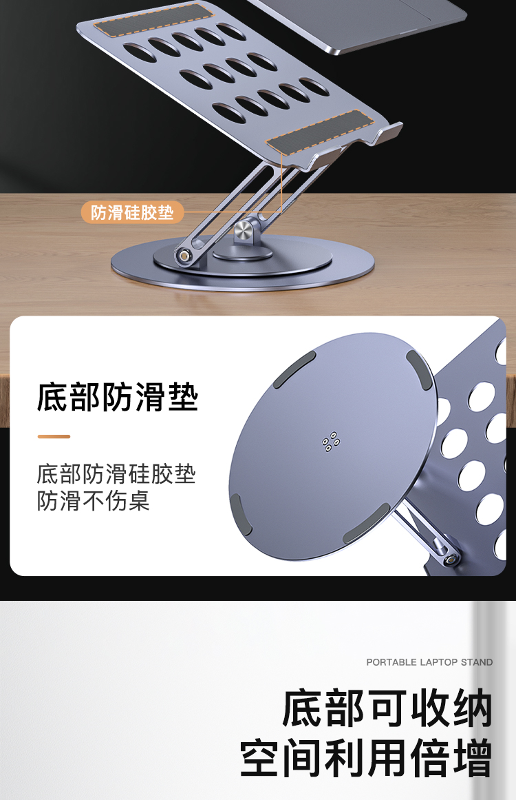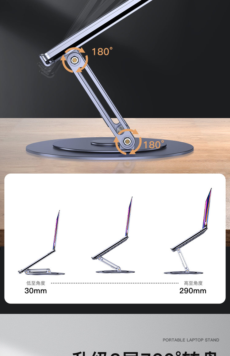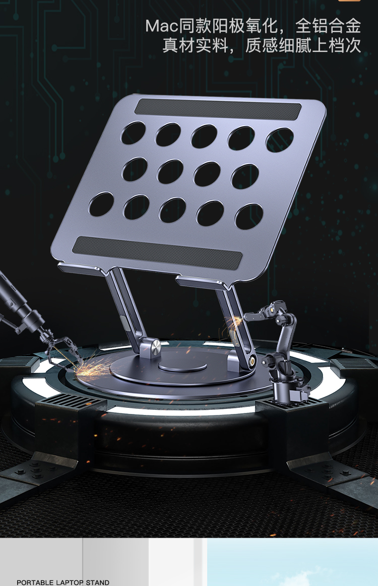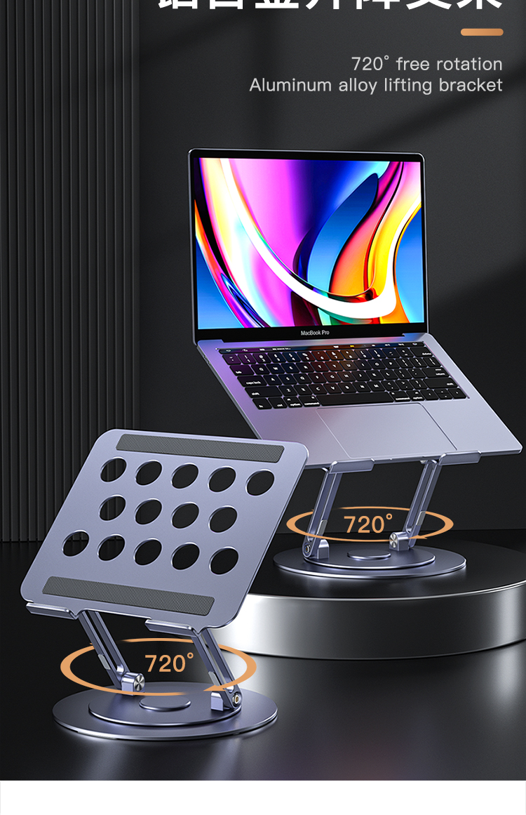 【720度可旋轉】MONDRIAN筆記本電腦支架托架桌面增高懸空升降鋁合金適用于蘋果macbook華為ipad平板散熱底座 筆電支架 7