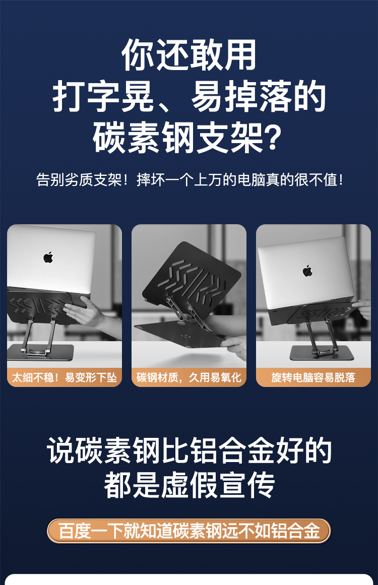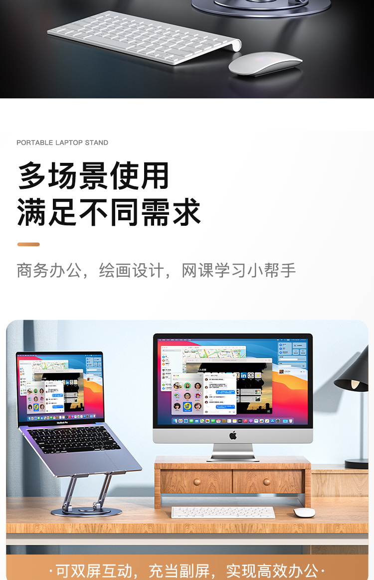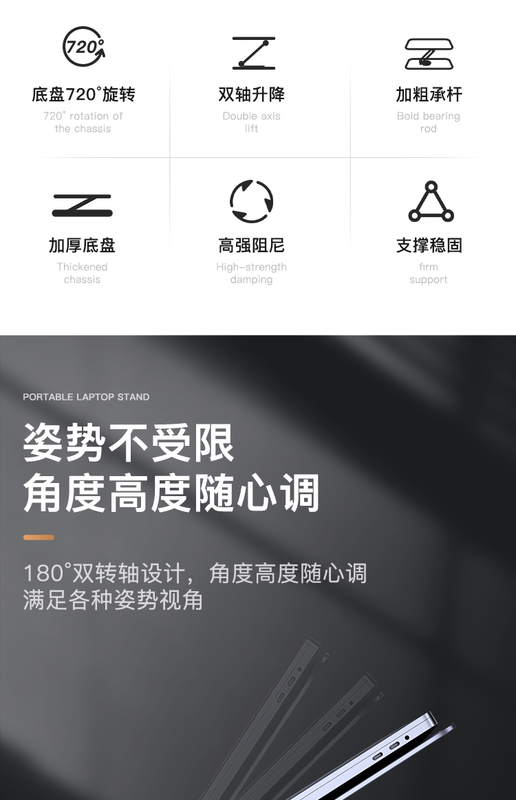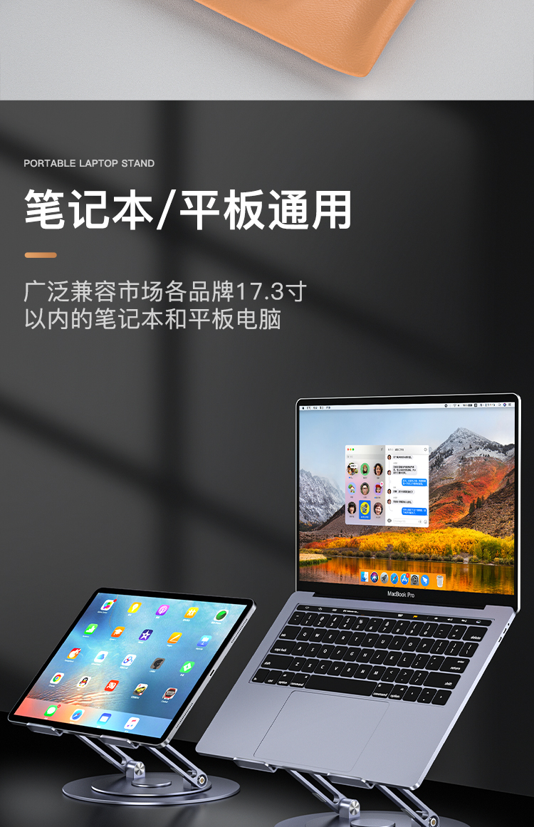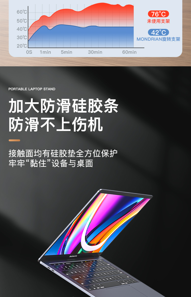 【720度可旋轉】MONDRIAN筆記本電腦支架托架桌面增高懸空升降鋁合金適用于蘋果macbook華為ipad平板散熱底座 筆電支架 7