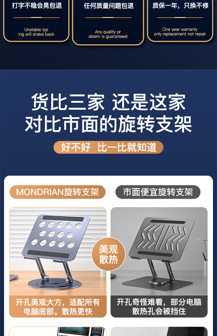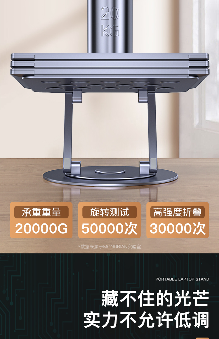 5. 【720度可旋轉】MONDRIAN筆記本電腦支架托架桌面增高懸空升降鋁合金適用于蘋果macbook華為ipad平板散熱底座 筆電支架