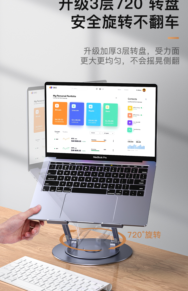 【720度可旋轉】MONDRIAN筆記本電腦支架托架桌面增高懸空升降鋁合金適用于蘋果macbook華為ipad平板散熱底座 筆電支架 5