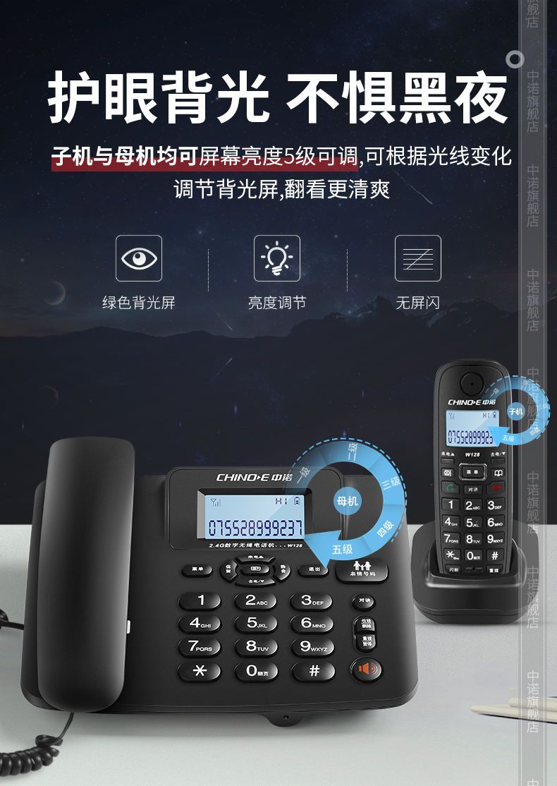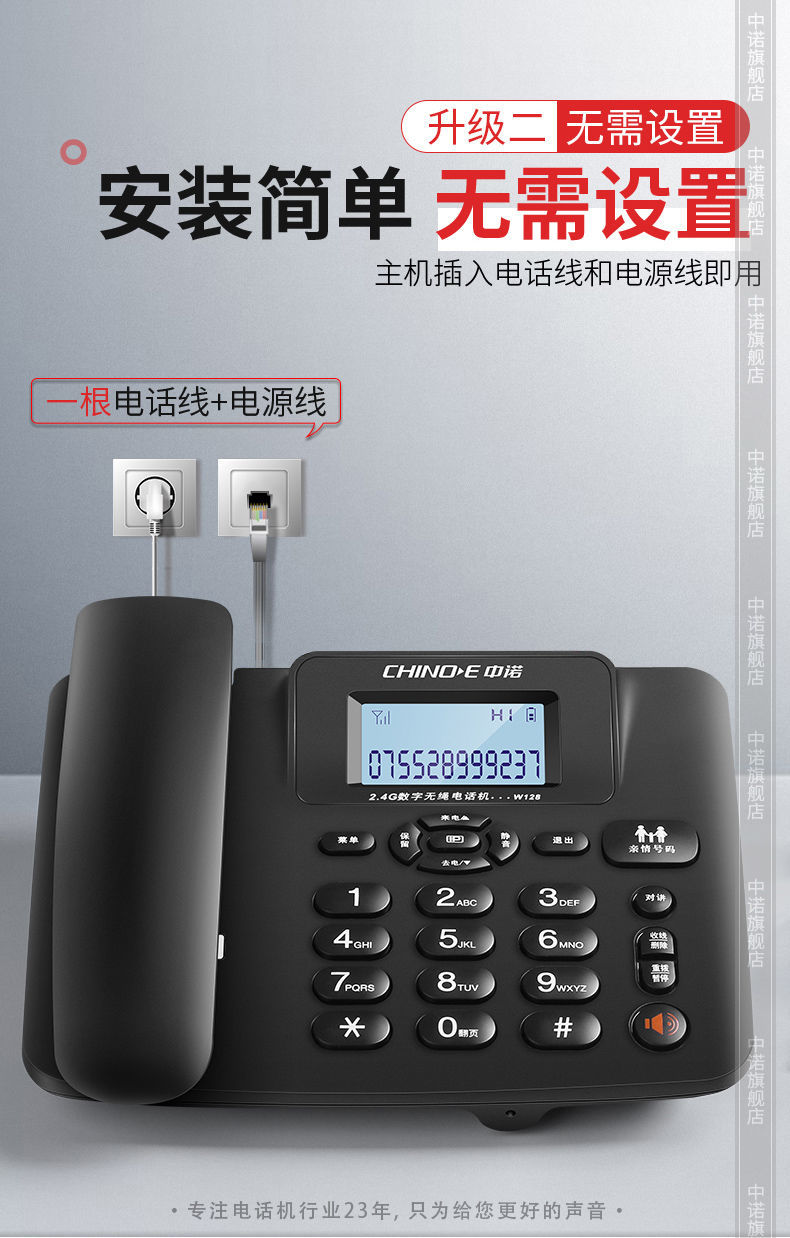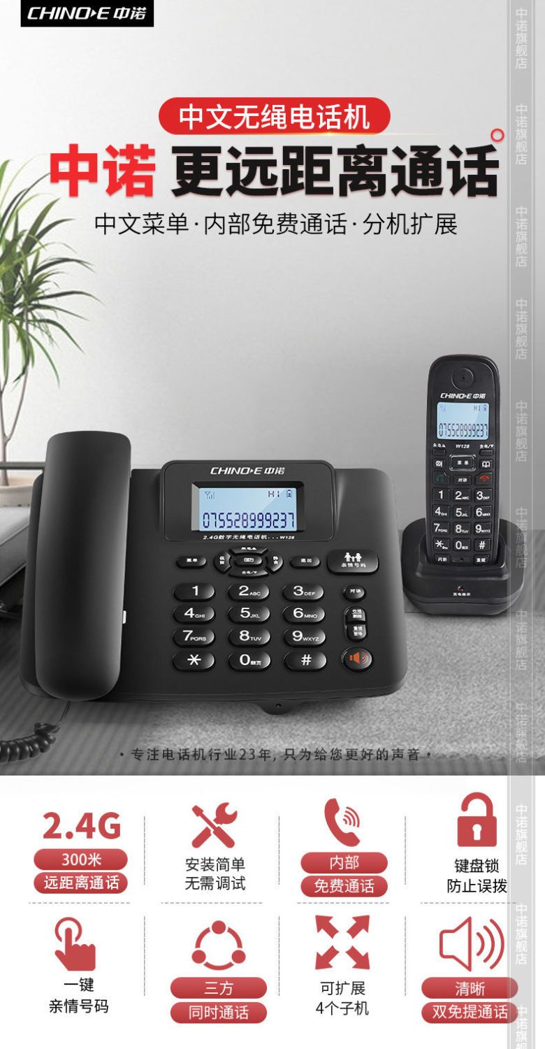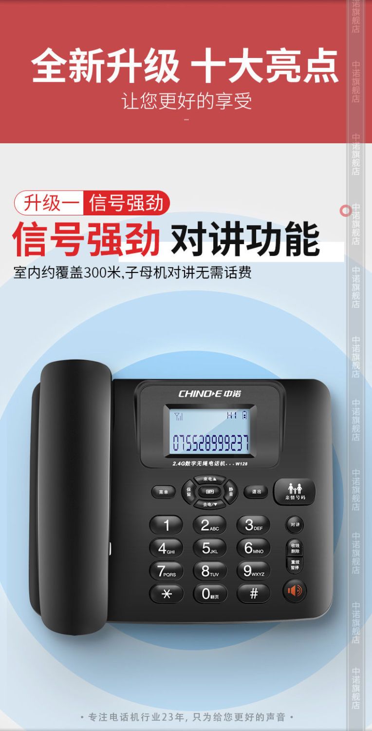 【最低價】【公司貨】中諾W128無繩電話機家用商務辦公子母機座機 無線電話一拖一拖二 5