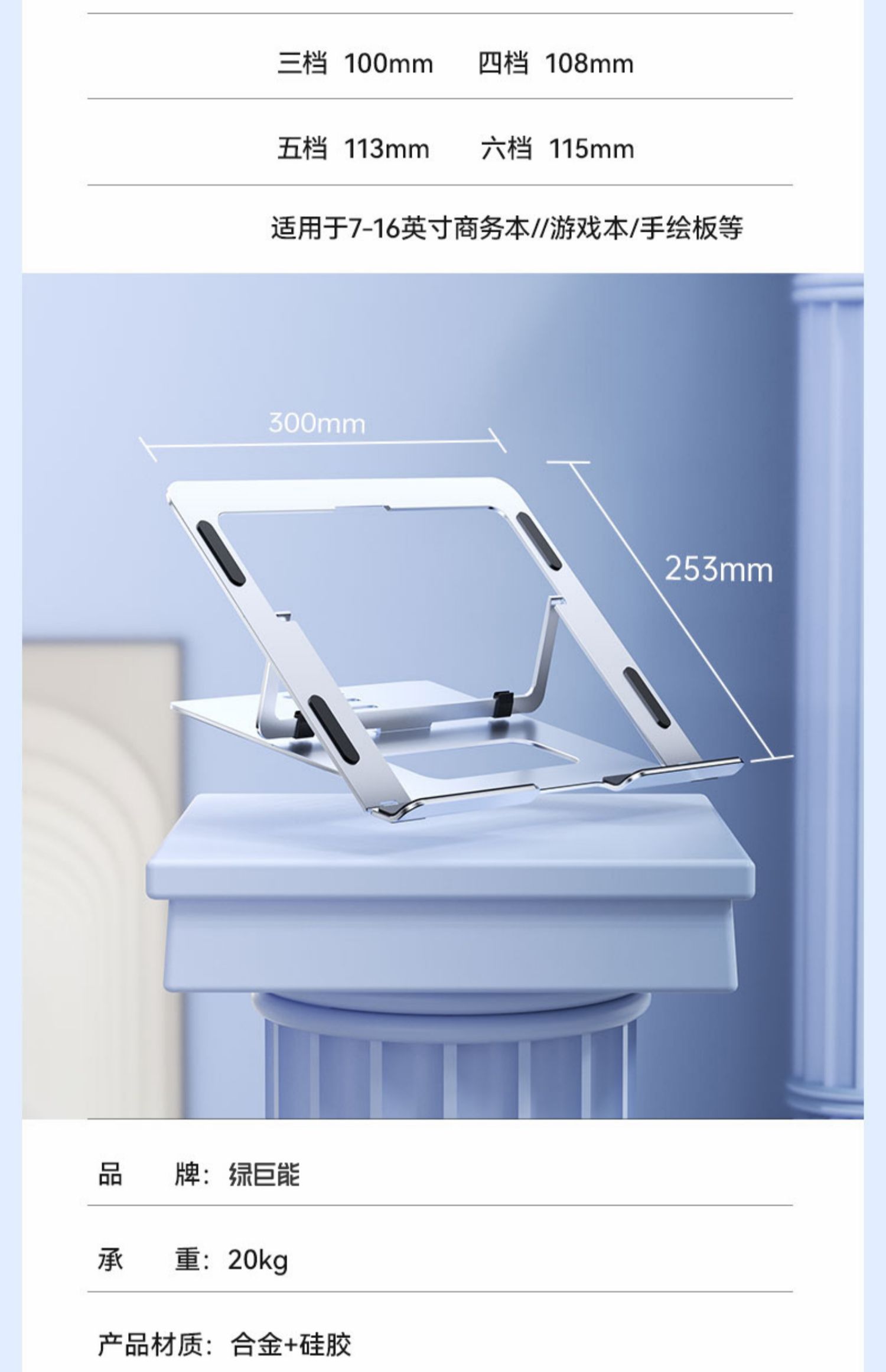 5. 綠巨能筆記本支架支撐架鋁合金折疊散熱加升降增高托架適用17.3寸蘋果macbook聯想拯救者華碩惠普外星人15.6 筆電支架