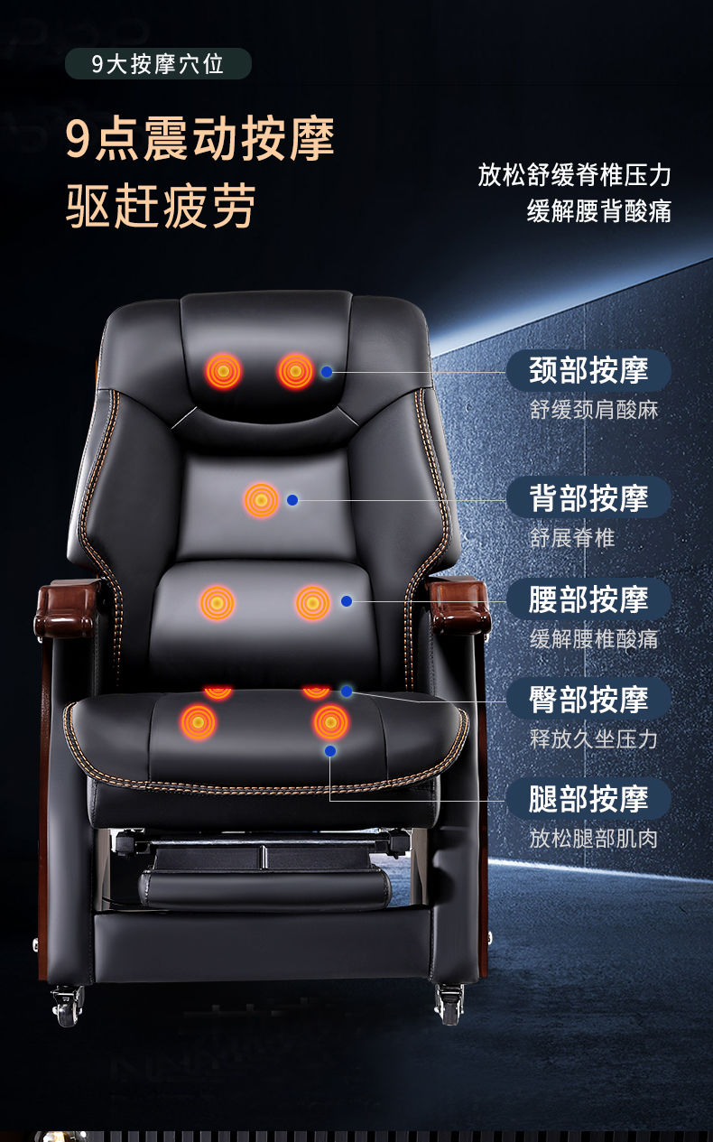 【可開發票】大班椅可躺按摩辦公椅電腦椅家用真皮轉椅舒服老板椅子午睡中老年 4