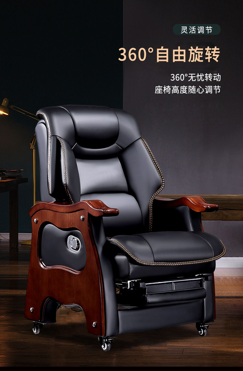 【可開發票】大班椅可躺按摩辦公椅電腦椅家用真皮轉椅舒服老板椅子午睡中老年 7