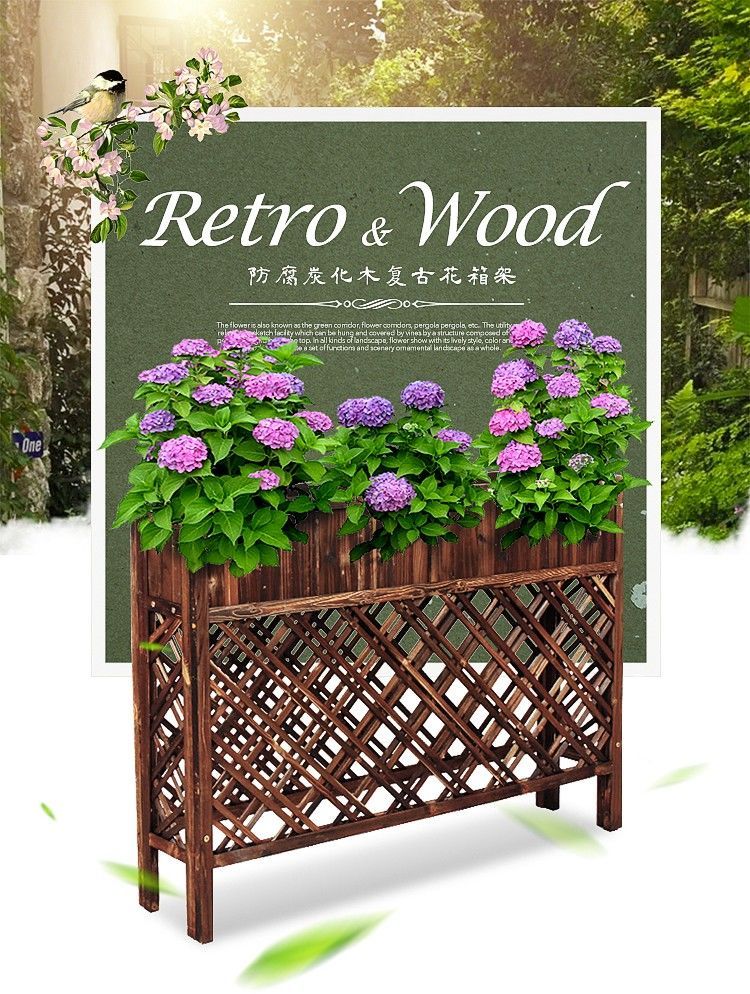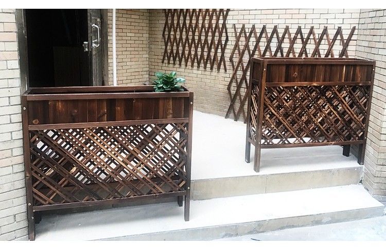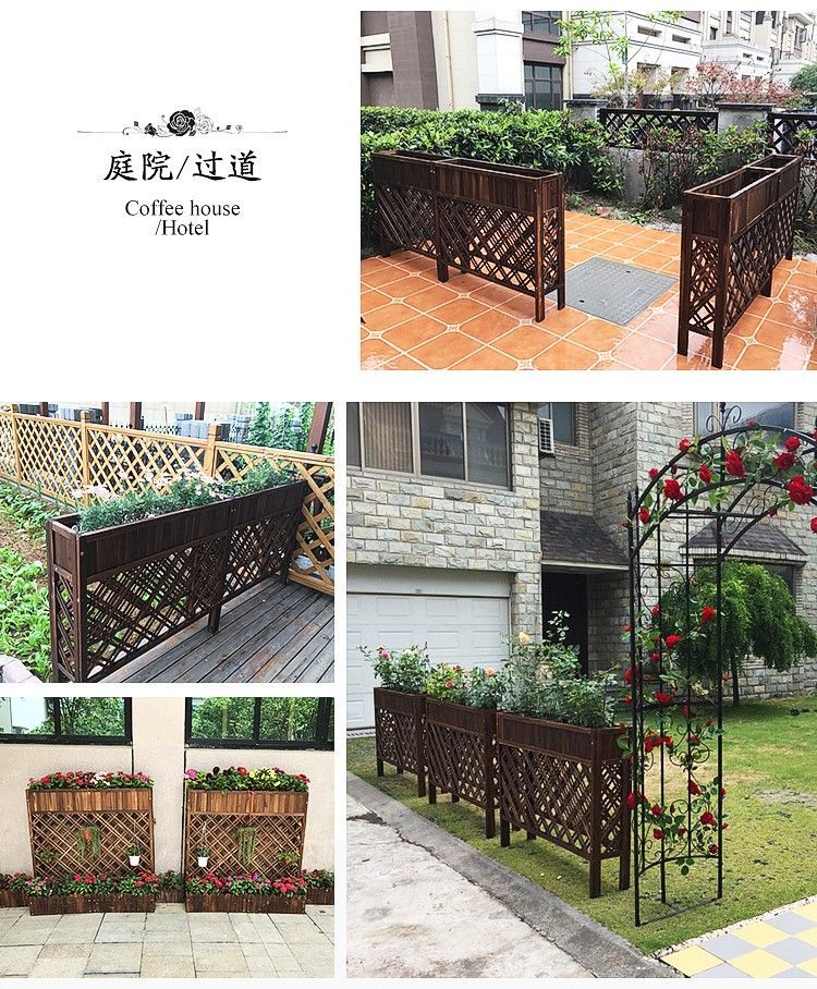【最低價】【公司貨】防腐木花架置物架餐廳隔斷圍欄庭院碳化木柵欄花箱戶外花槽花盆架 5