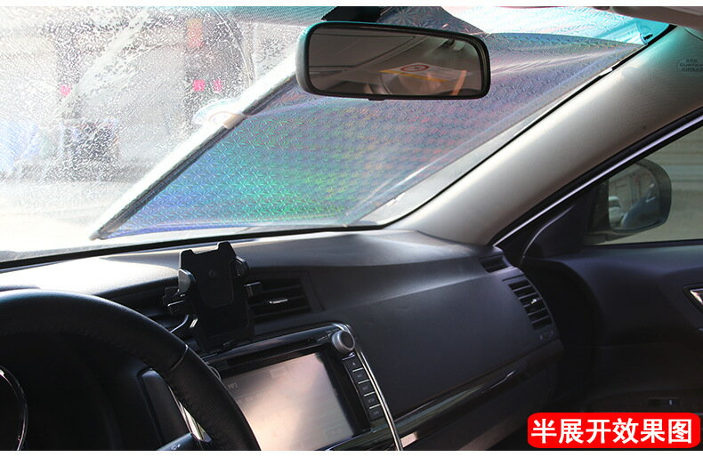 1、 將帶有合金杆的吸盤按在檔風玻璃的一端,使隔熱簾固定在檔風玻璃一邊。