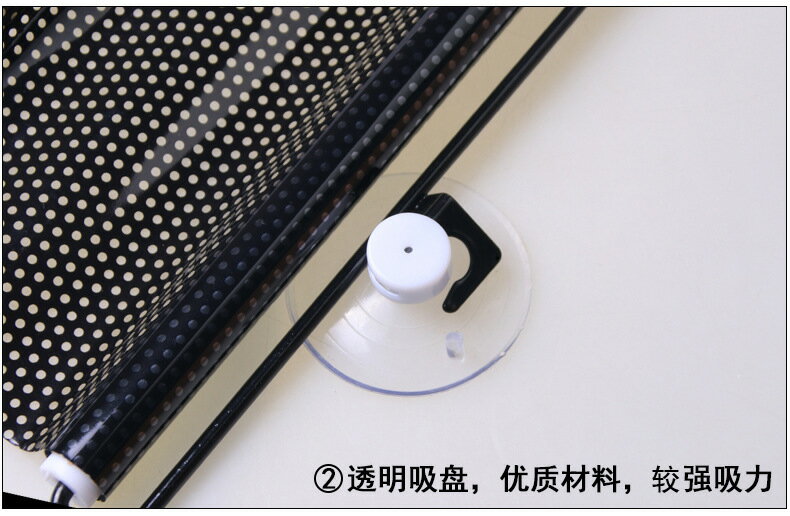 3、不想使用隔熱簾的時候,只需輕輕一拉吸盤上邊側的小圓粒,即可使吸盤脫離玻璃,隔熱簾自動收卷