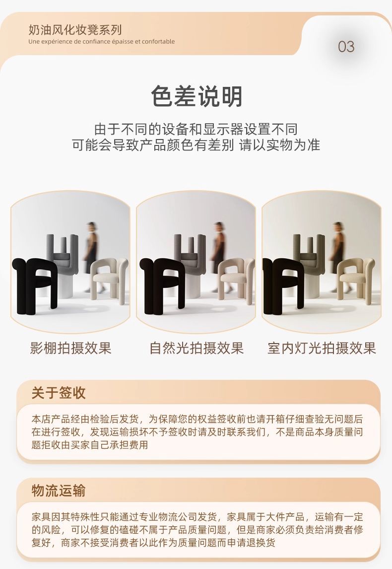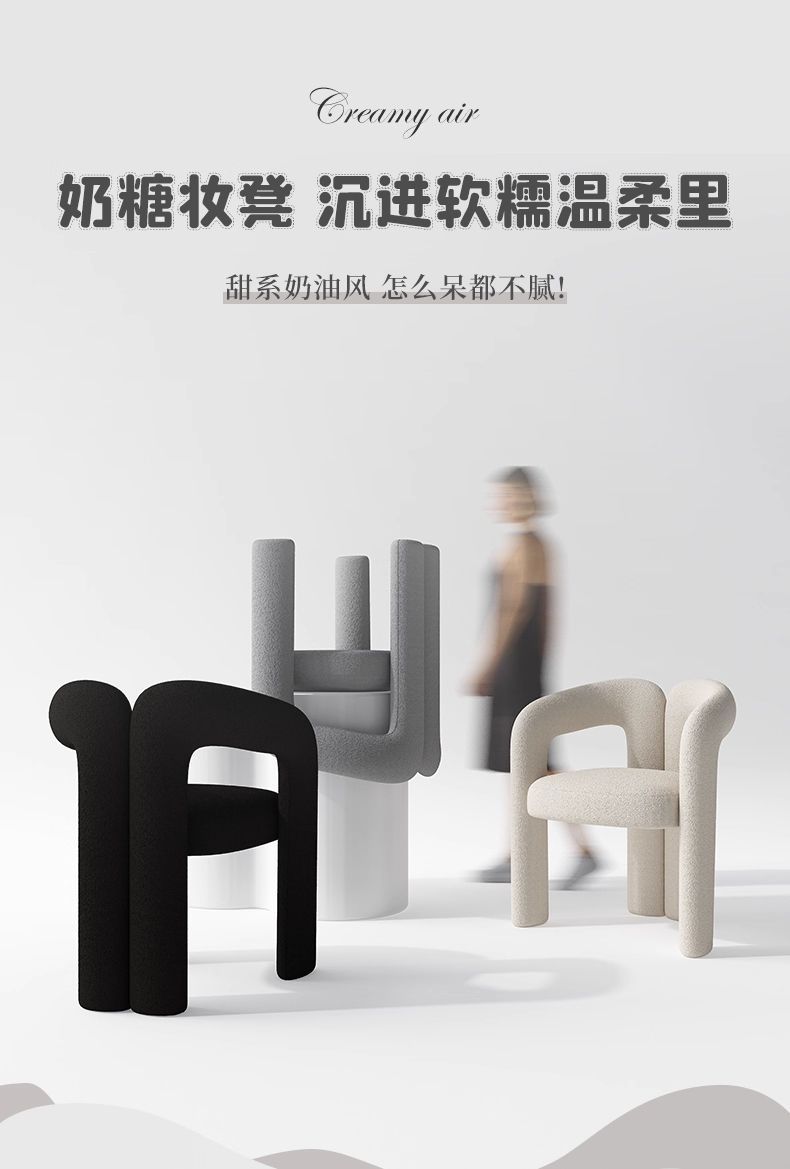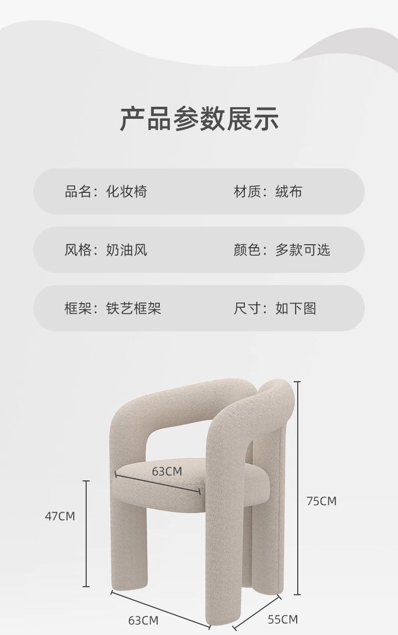 讓這張如奶糖般軟糯的妝凳, 從此,坐下的每一刻,皆是溫柔。與卸下疲憊的夜晚。陪伴你每個從容上妝的晨間。
