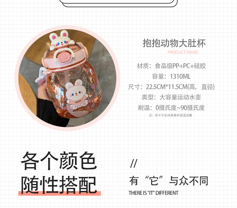 優購生活 大肚杯大容量耐高溫水杯女生高顏值便攜兒童上學杯子夏季吸管水壺運動水壺 水瓶 大容量水壺 大水壺 防摔水壺 7