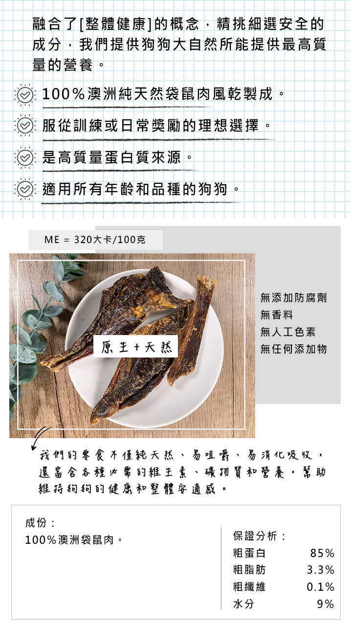 【CRIUS 克瑞斯】袋鼠鮮肉片 狗點心 寵物點心 天然澳洲點心_45G 0
