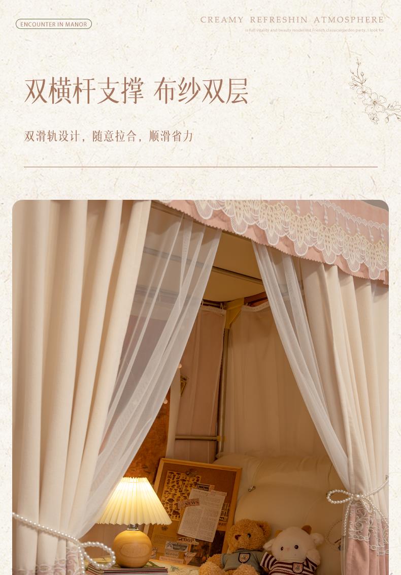 【可打統編 超低價】蒂言美式覆古u型軌道床簾宿舍上下鋪寢室強遮光窗加厚 大學生蚊帳 3