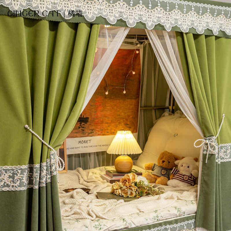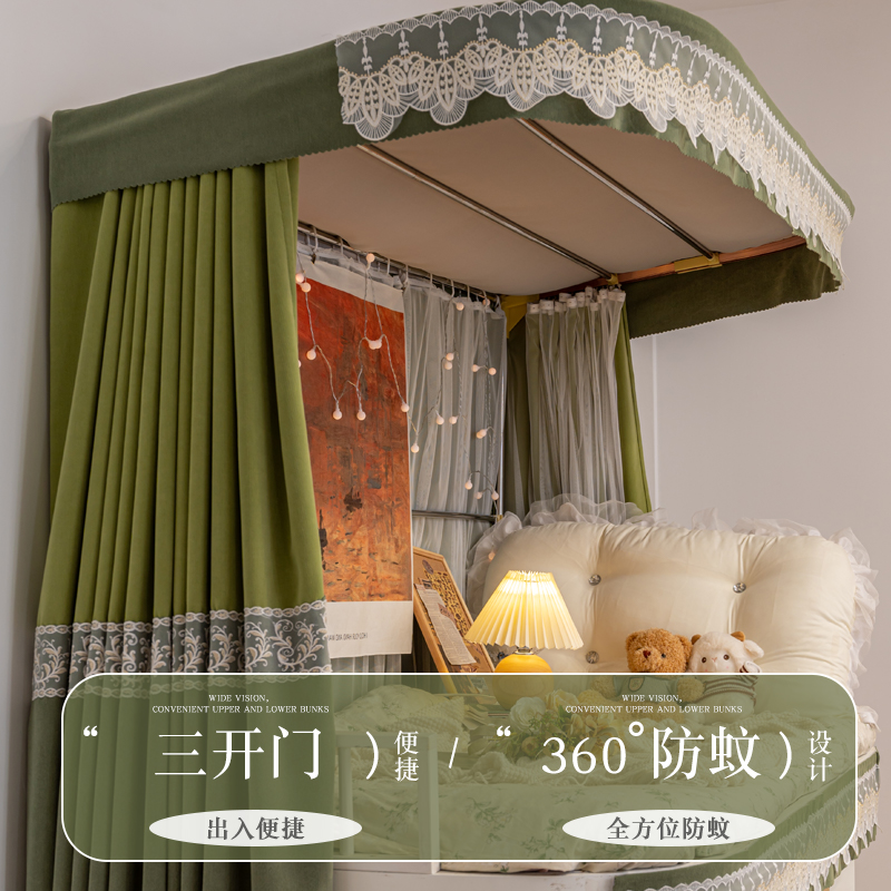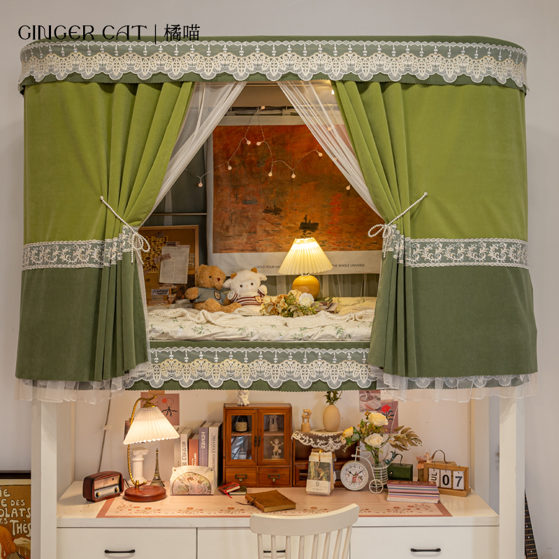 【可打統編 超低價】橘喵美式u型軌道床簾宿舍上下鋪寢室加厚強遮光復古窗 大學生蚊帳 5