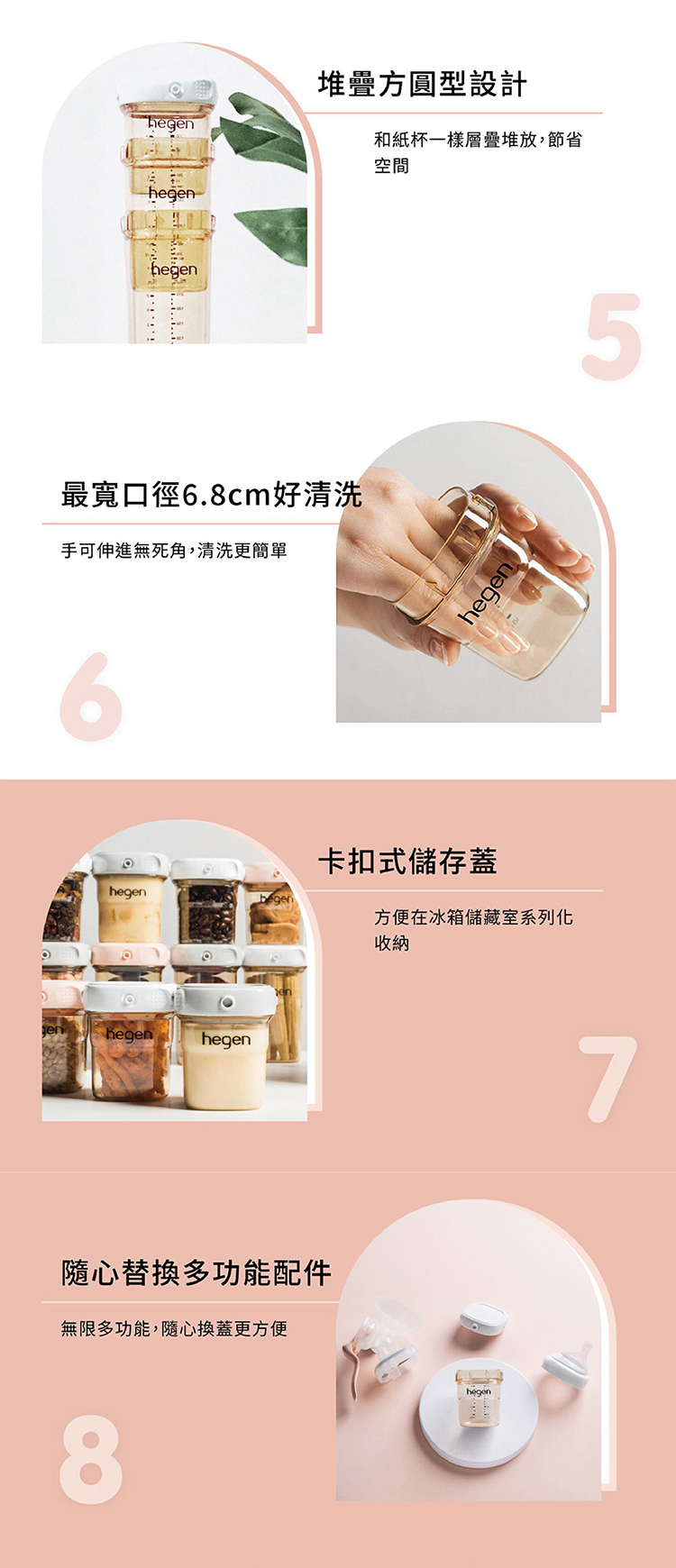 首創可以和紙杯一樣疊放領先業界,空瓶或裝滿時都可整齊疊放,充分利用冰箱或母嬰袋的儲存空間。