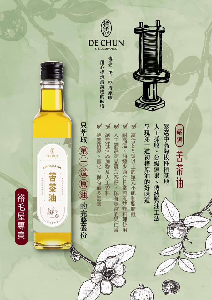 德春製油【嚴選苦茶油】250ml|100%苦茶油