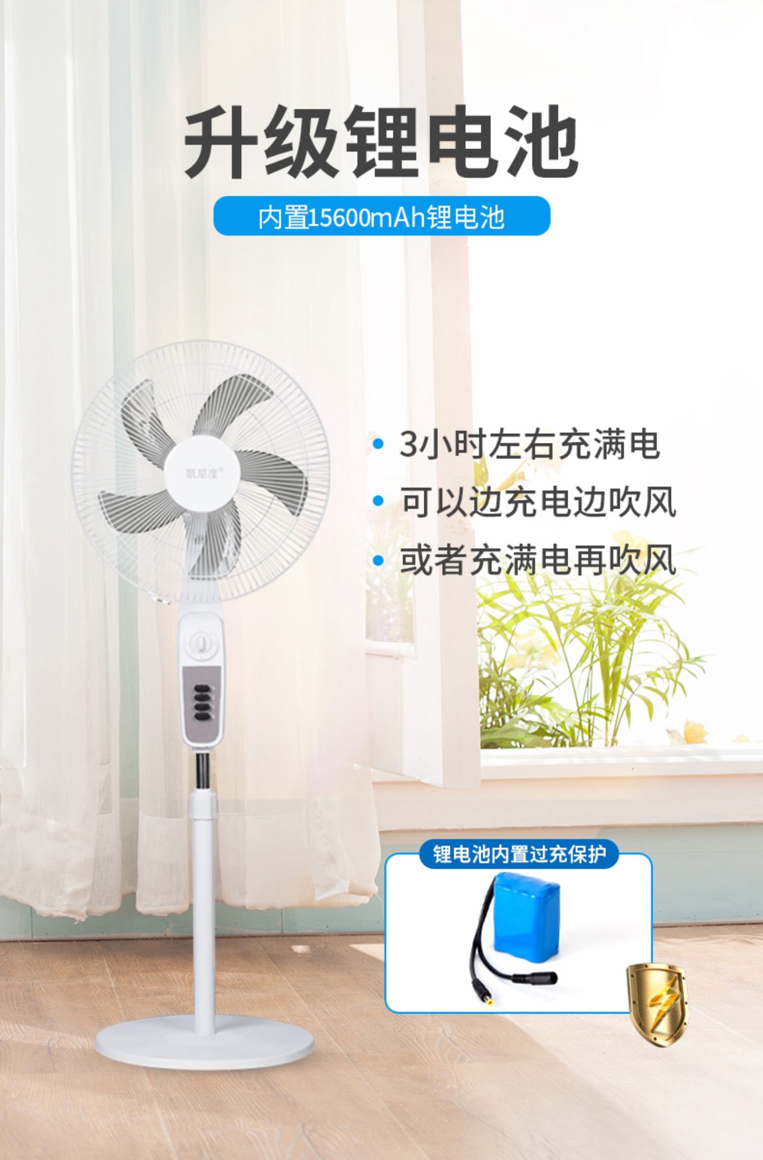 5. {可打統編 保固一年}凱尼度太陽能充電無線落地風扇大風力超長續航家用戶外16寸大功率