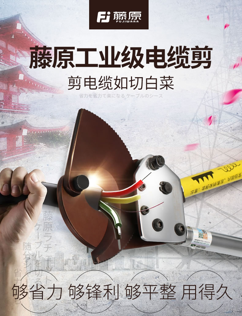 5. {可打統編 最低價}藤原棘輪式電纜剪線鉗線纜電線斷線鉗銅鋁J40/52/75/95棘輪剪便攜