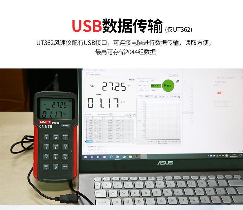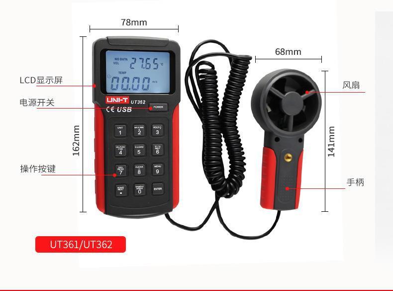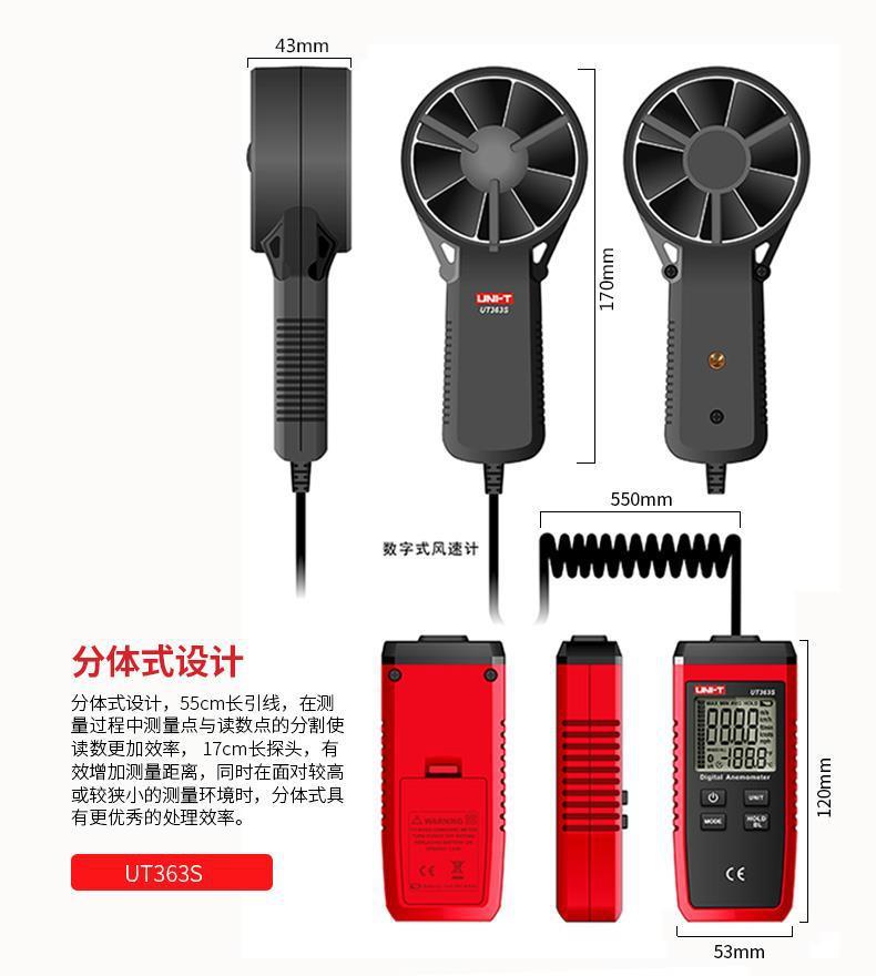 5. {保固一年 可打統編}優利德風速儀UT363/UT363BT風速計測風儀風力測量儀UT363S分體式