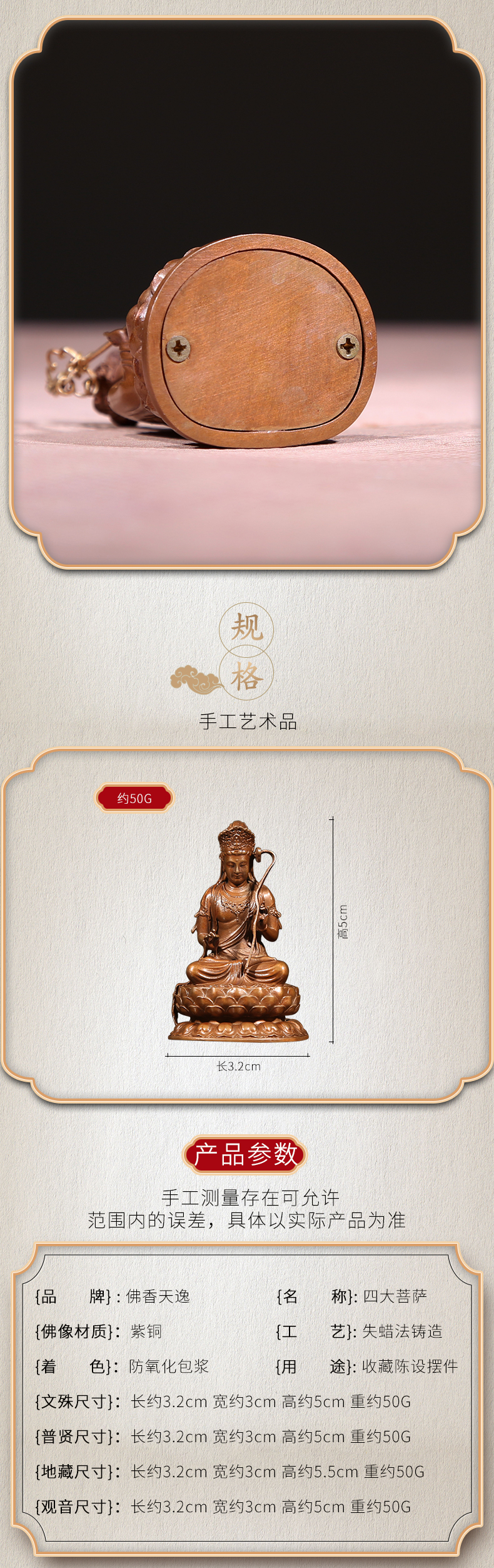 {保固一年 可打統編}佛香天逸紫銅文殊普賢菩薩地藏王菩薩觀音菩薩四大菩薩迷你小佛像 6