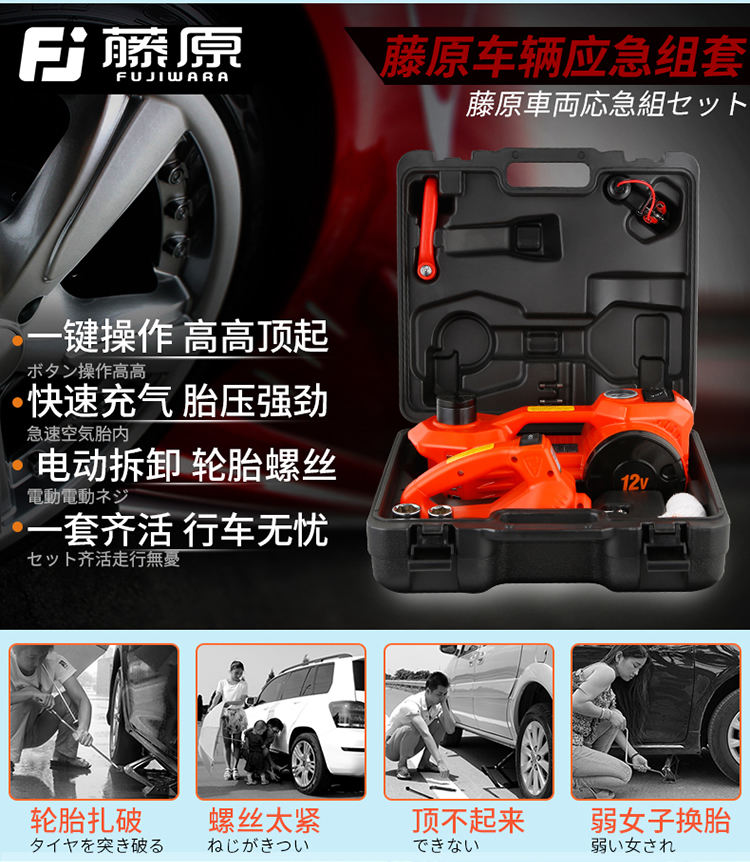 {可打統編 最低價}藤原12v汽車電動液壓千斤頂 車載充氣泵轎車越野車用臥式千斤頂 3