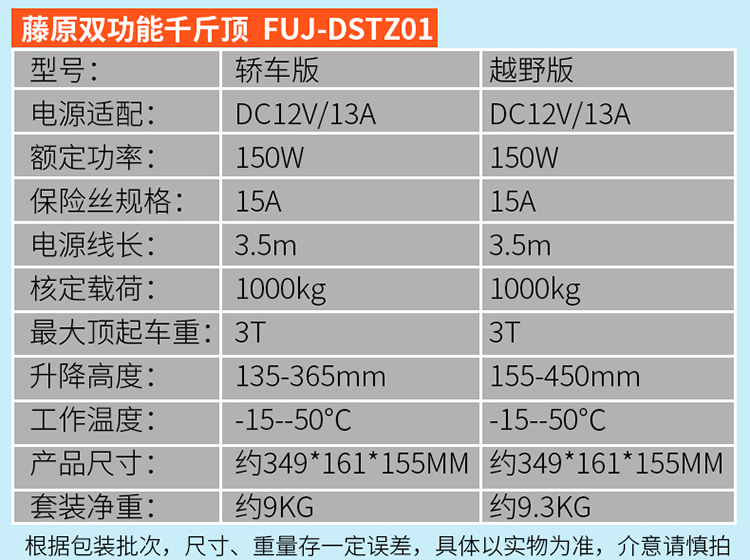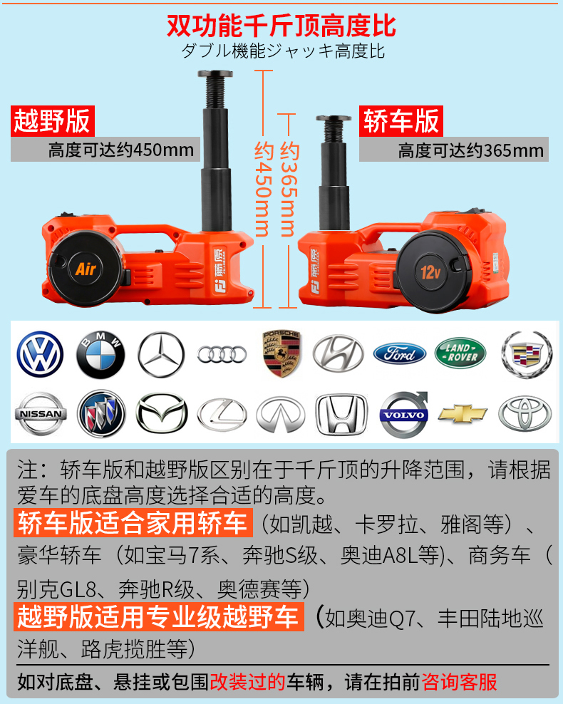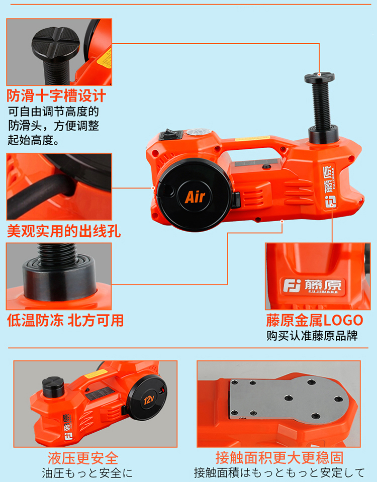 5. {可打統編 最低價}藤原12v汽車電動液壓千斤頂 車載充氣泵轎車越野車用臥式千斤頂