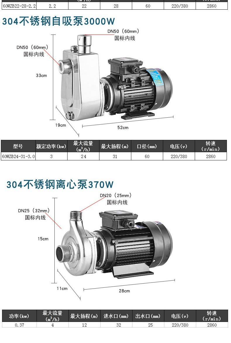 {公司貨 保固一年}304不銹鋼自吸泵耐酸堿離心泵耐高溫泵腐蝕泵化工泵抽酒食品泵 3
