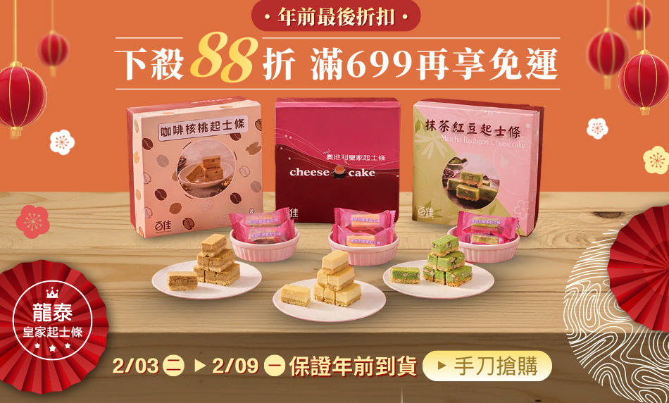 2/09(一) 23:59前訂購並完成付款,保證年前到貨